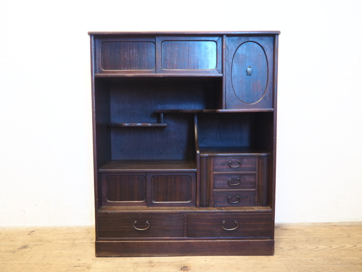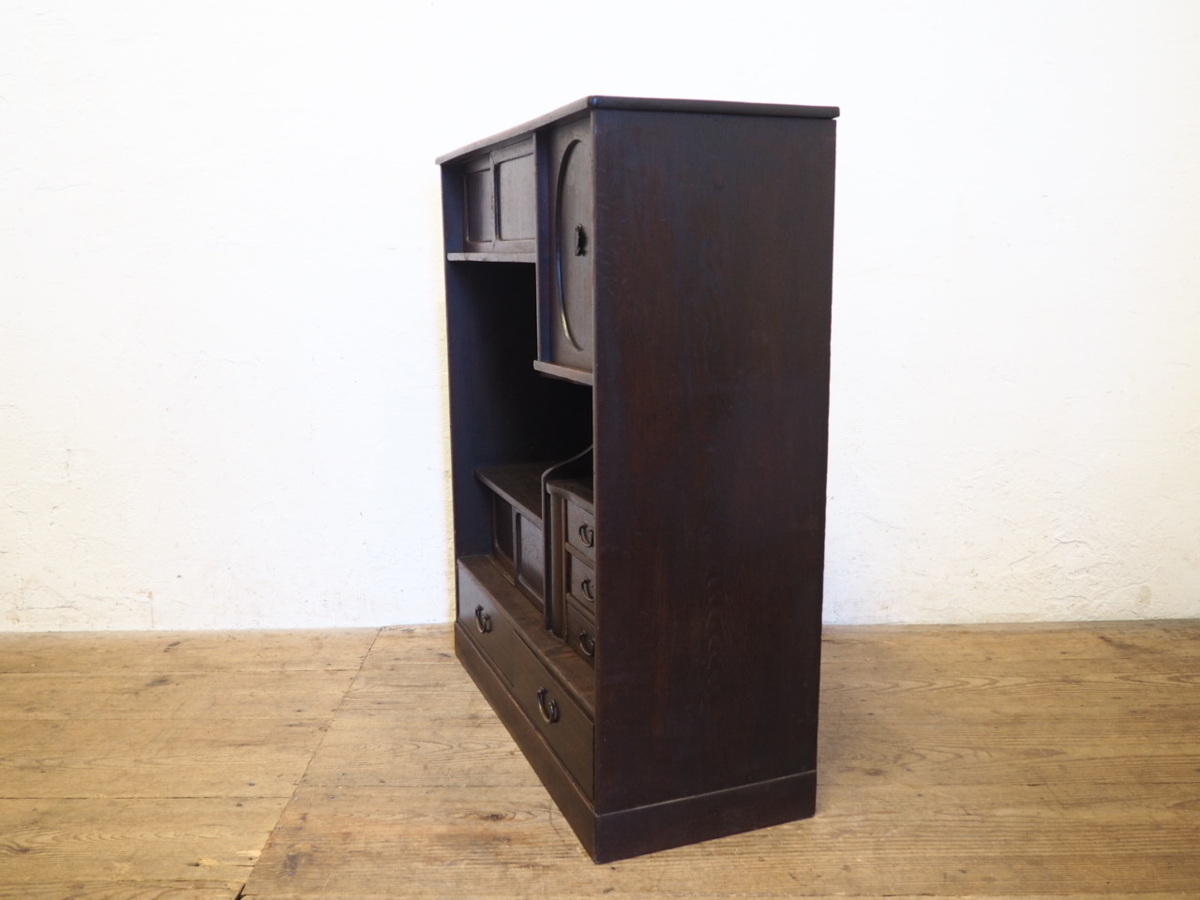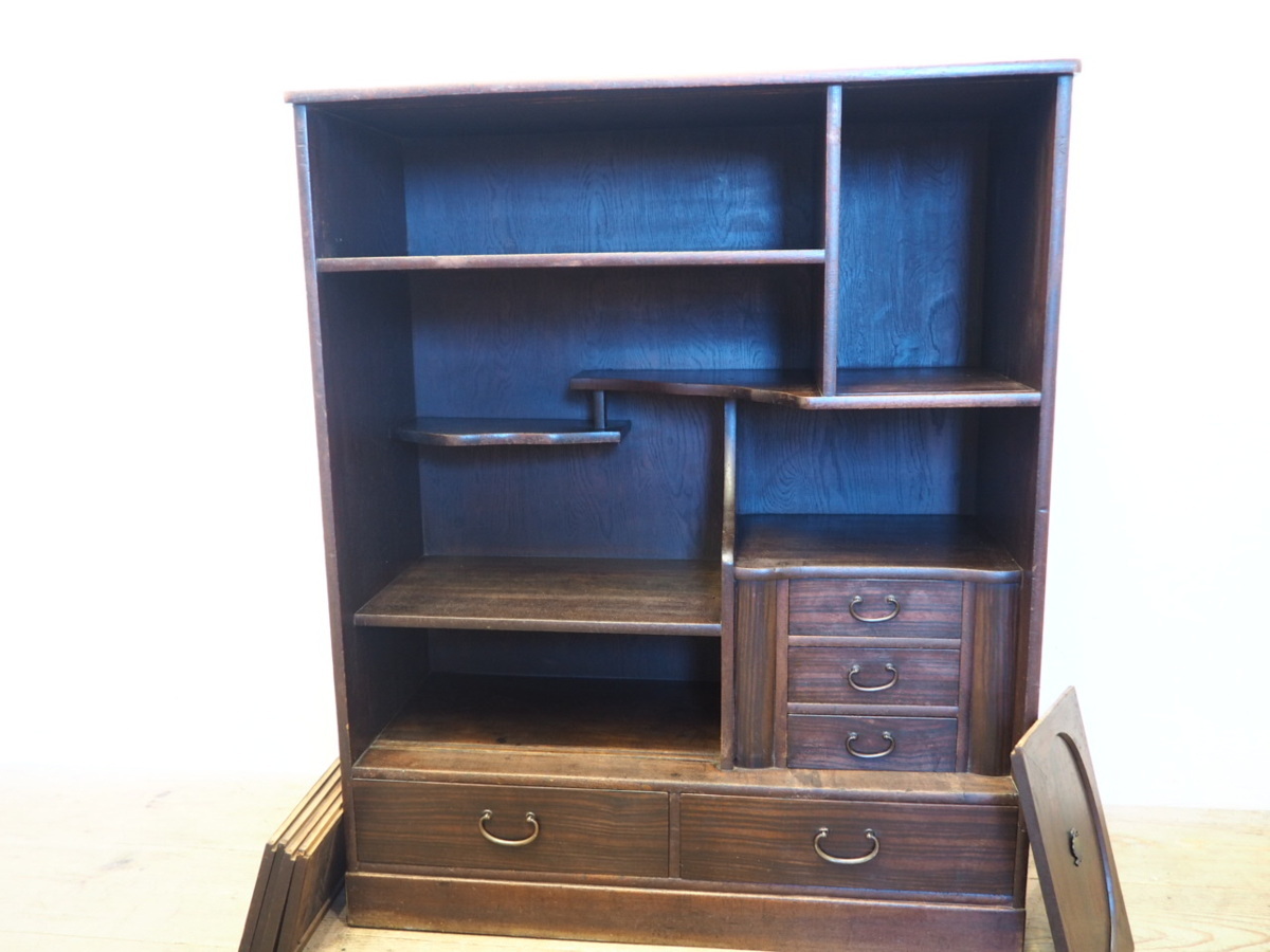 タW0466◆H93,5cm×W77,5cm◆レトロな味わいの古い木製飾り棚◆収納棚 茶箪笥 和タンス キャビネット 骨董 和室 インテリアM庭