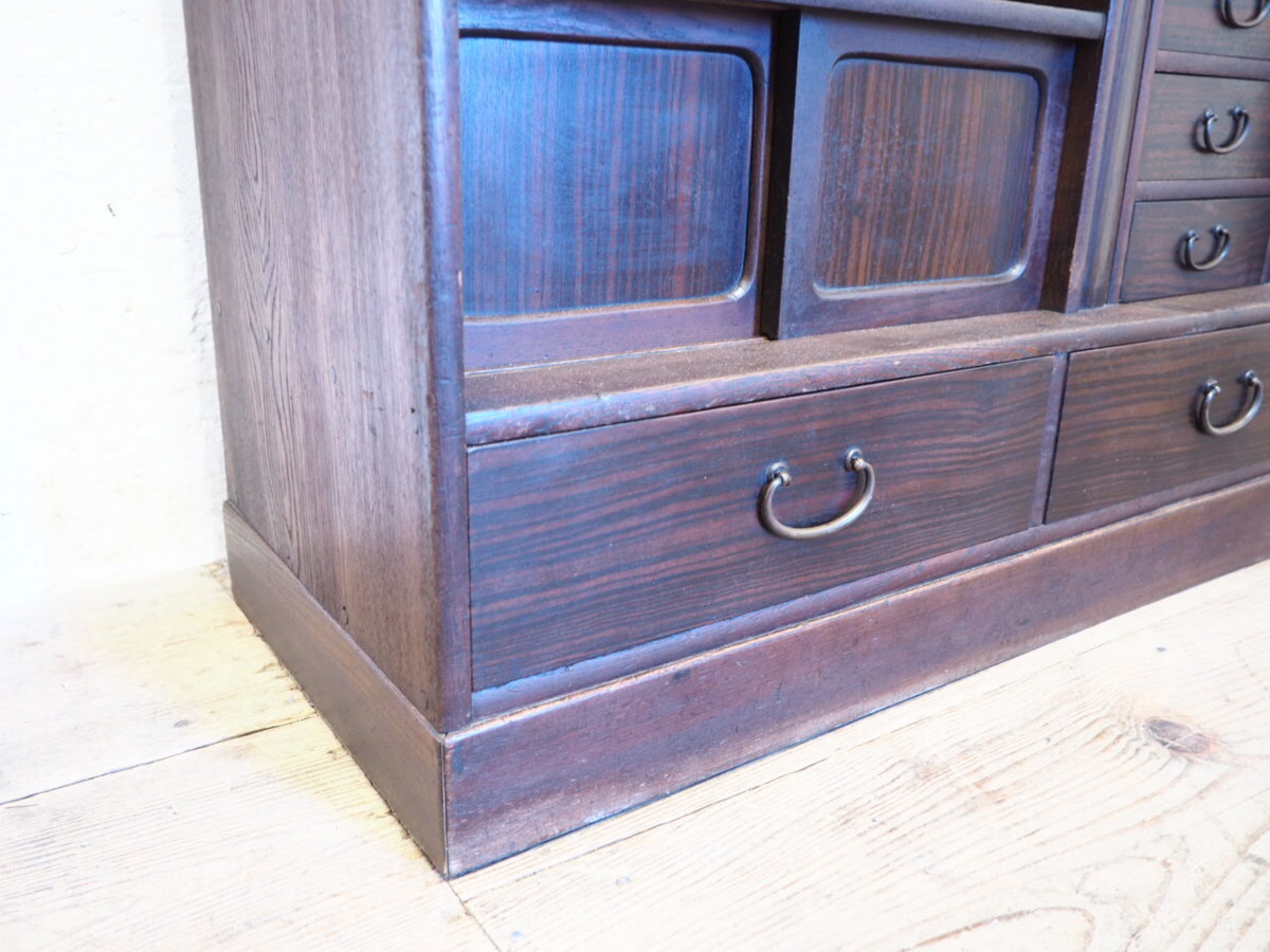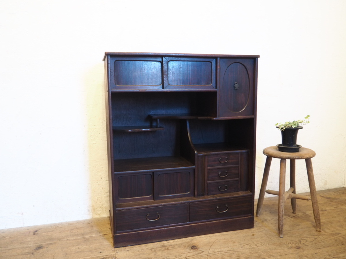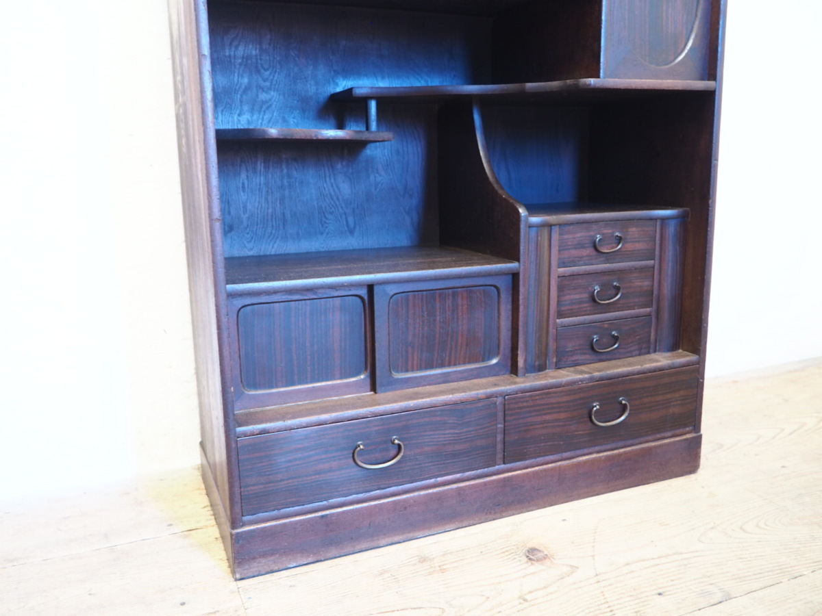 タW0466◆H93,5cm×W77,5cm◆レトロな味わいの古い木製飾り棚◆収納棚 茶箪笥 和タンス キャビネット 骨董 和室 インテリアM庭