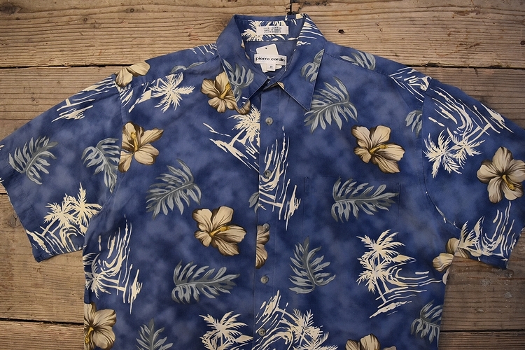 グッドスタイルアイテム◎90sビンテージpierre cardinピエールカルダン半袖コットンアロハシャツMマルチ総柄アメカジストリート t980