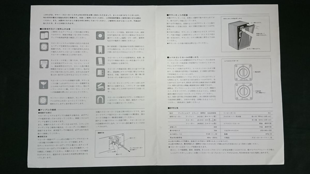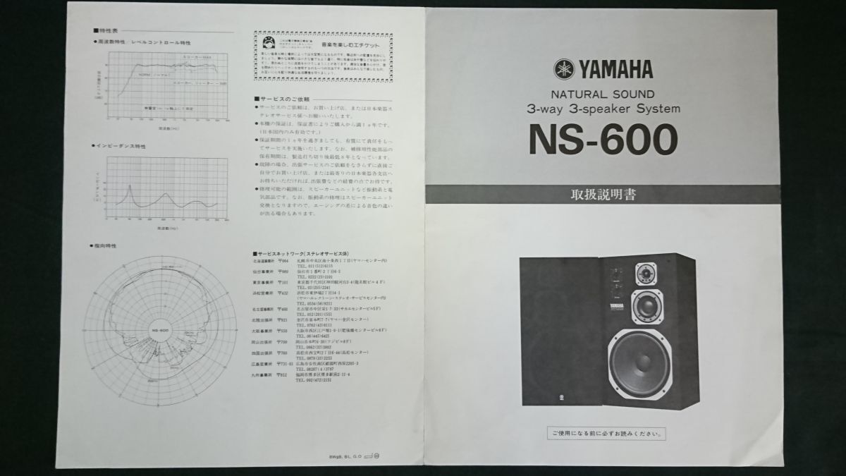 【昭和レトロ】『YAMAHA(ヤマハ) NATURAL SOUND 3-way 3-speaker System(スピーカーシステム) NS-600 カタログ 1981年10月+取扱説明書のセット』YAMAHA日本楽器製造株式会社 | |