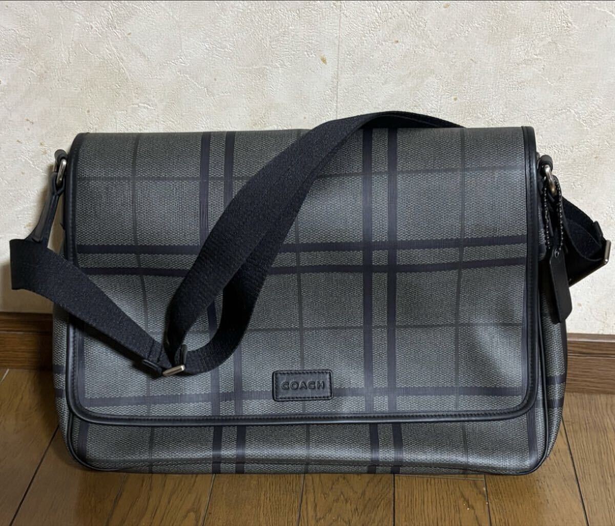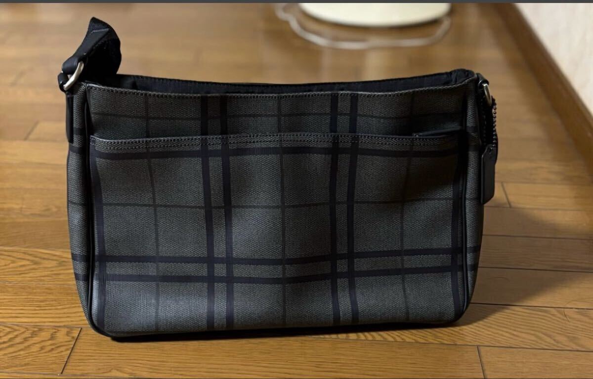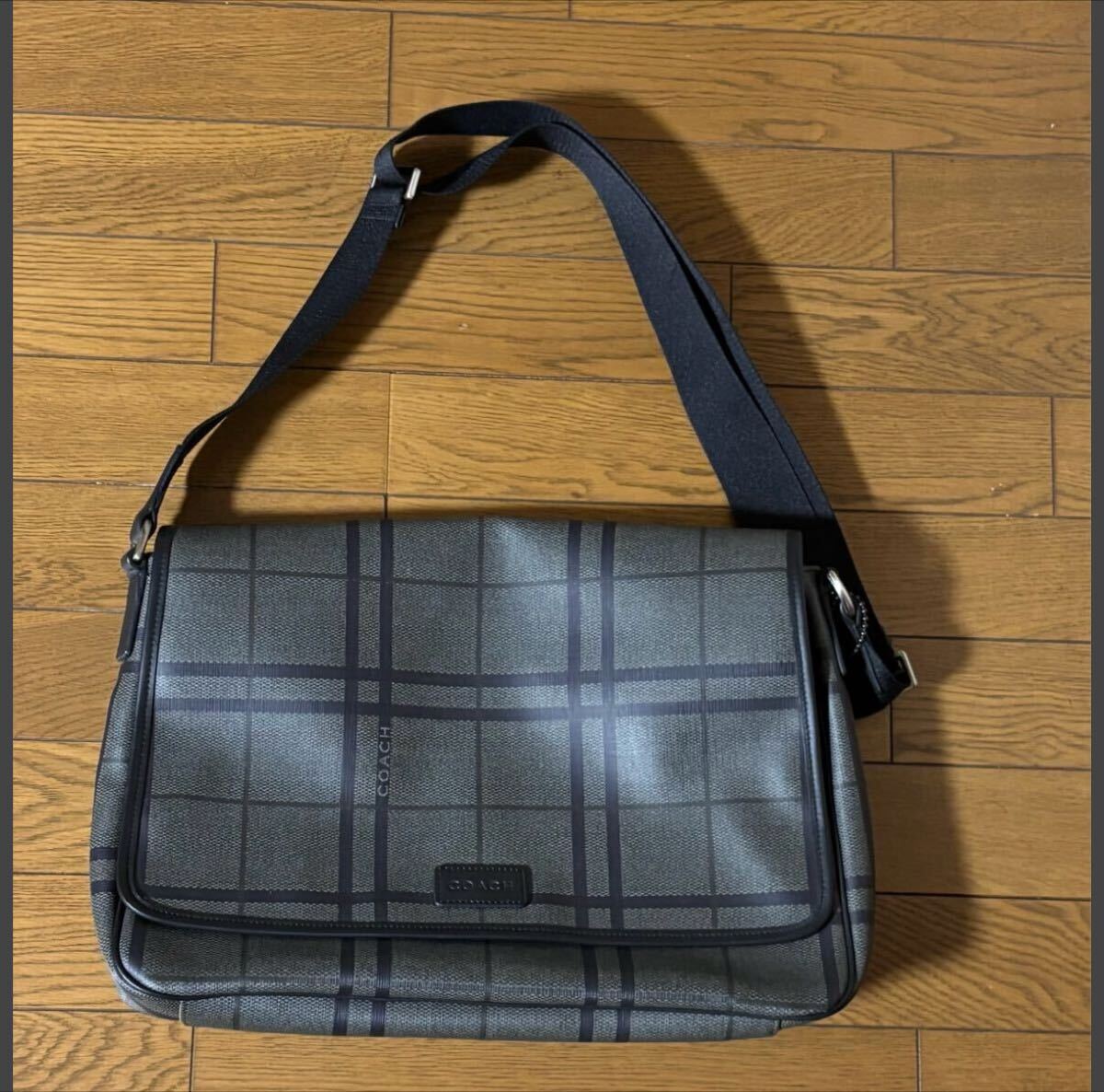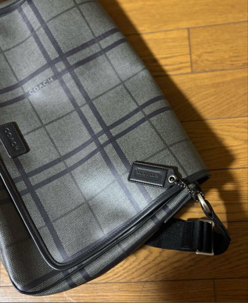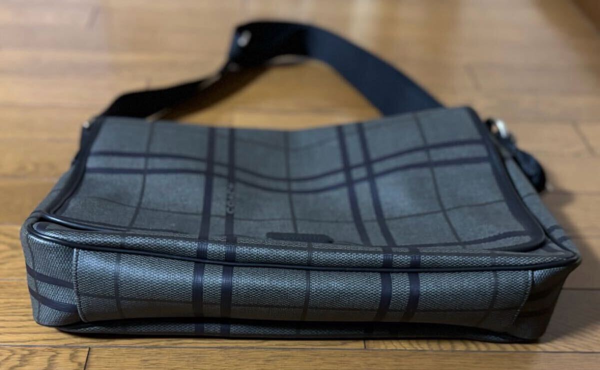 商品名 : コーチ レザー メッセンジャーバッグ レザー チェック グレー×ブラウン ショルダーバッグ