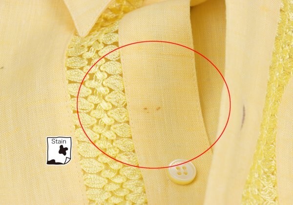 コンディション | 品質タグがありません。透け感があります。前立て裏、左袖にシミがあります(写真参照)その他目立ったシミ、汚れ、ほつれ等なくいい状態です。クリーニング済み。 ※商品の詳細写真はこちらよりご確認頂けます。 |