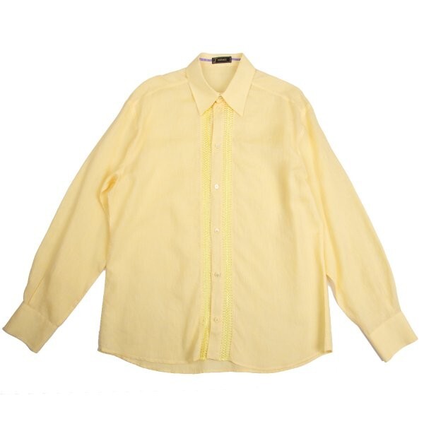 ヴェルサーチVERSACE フロント装飾シャツ 黄L位 |