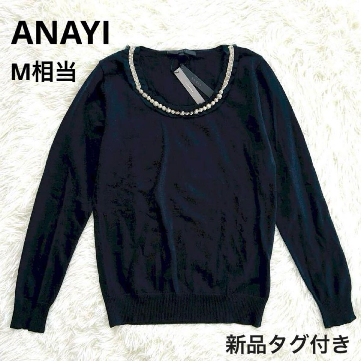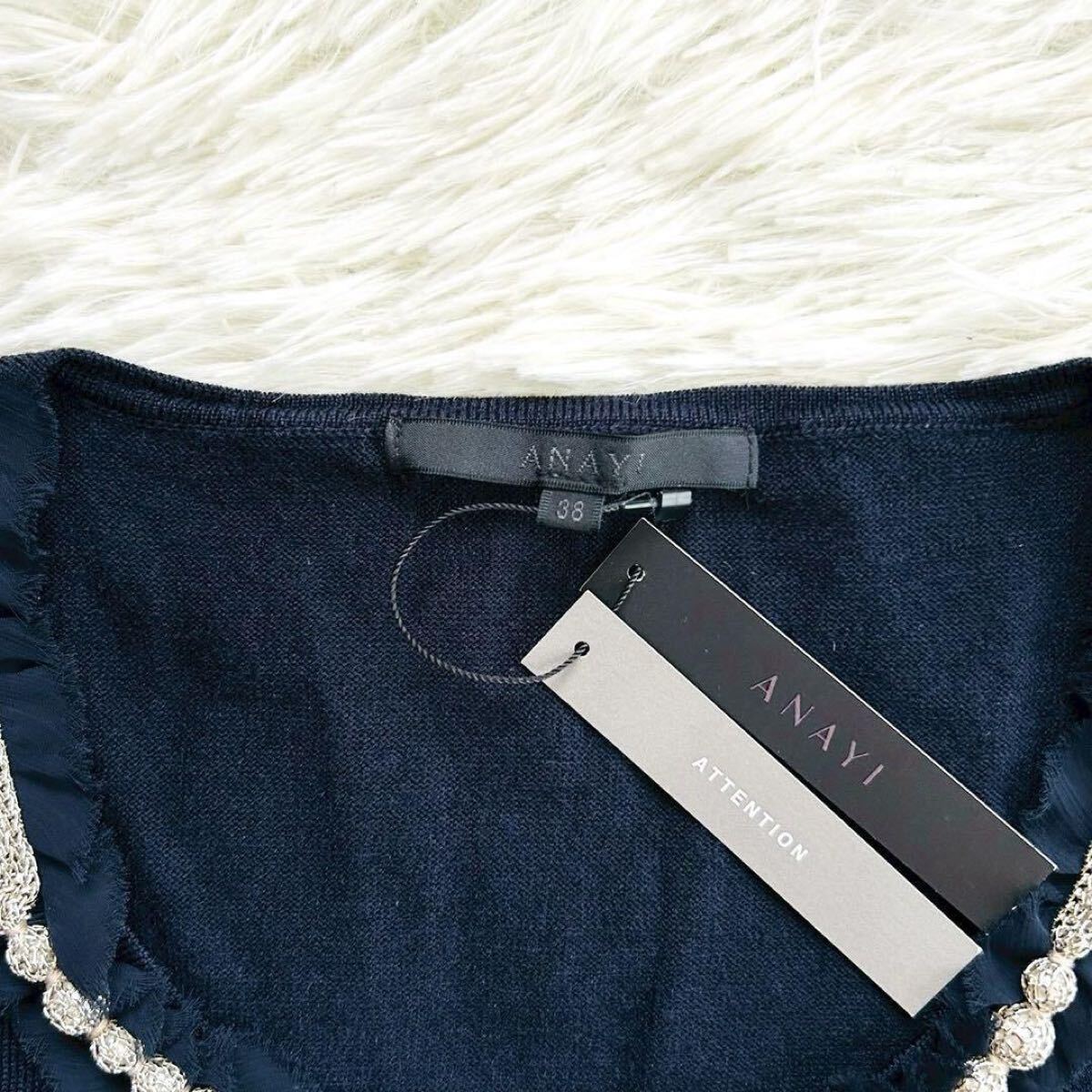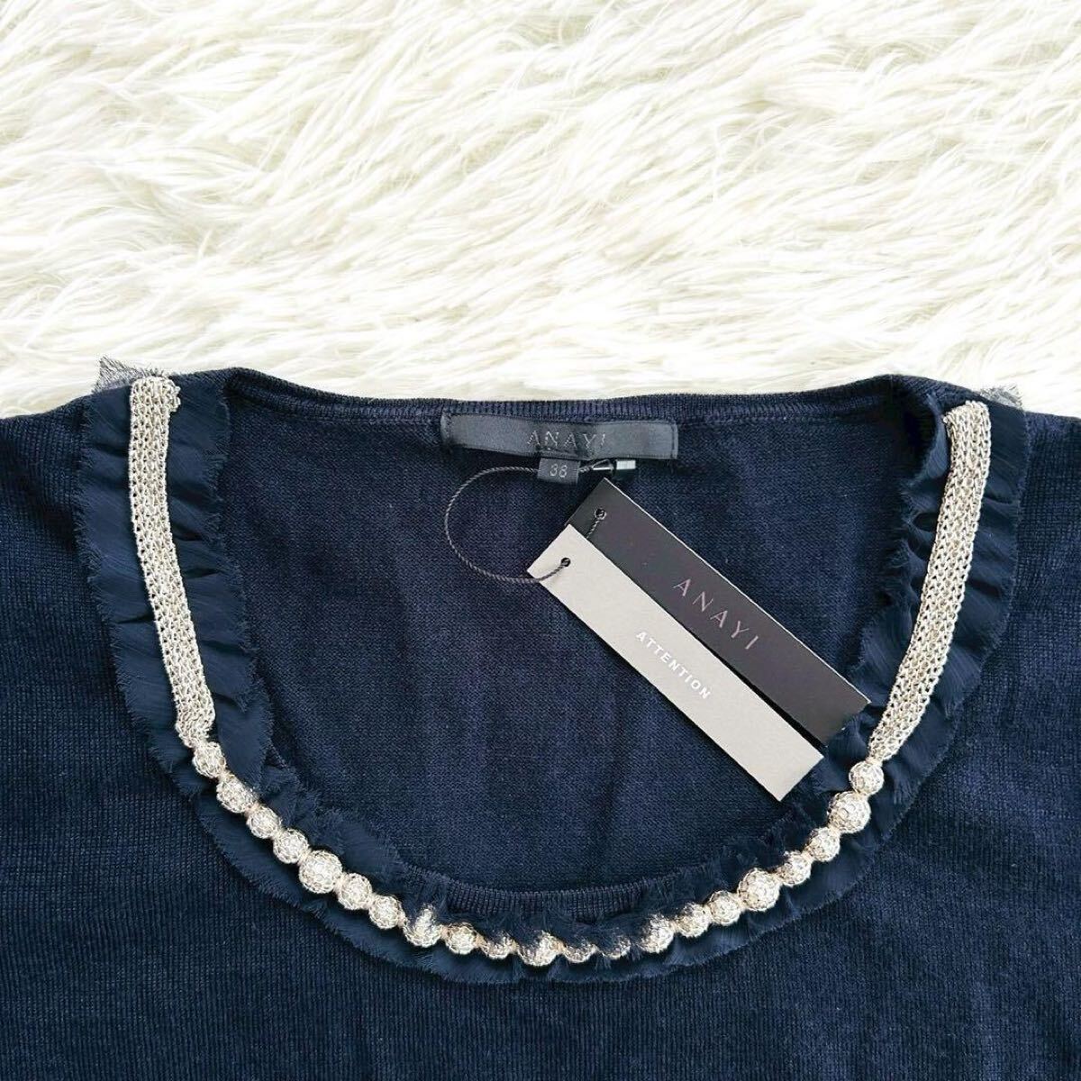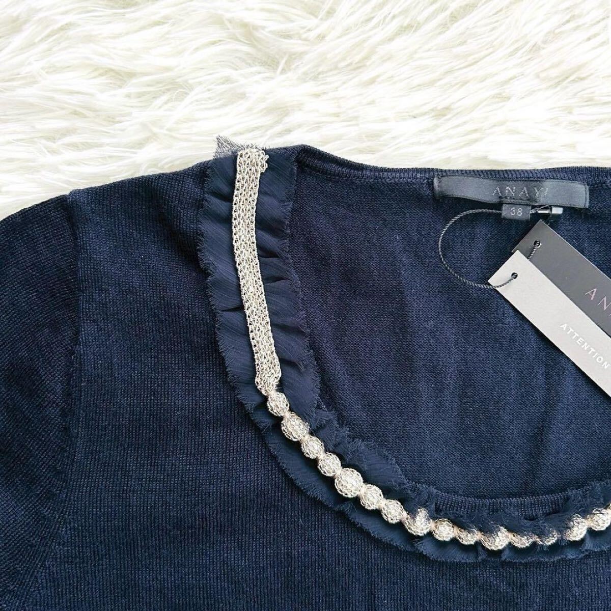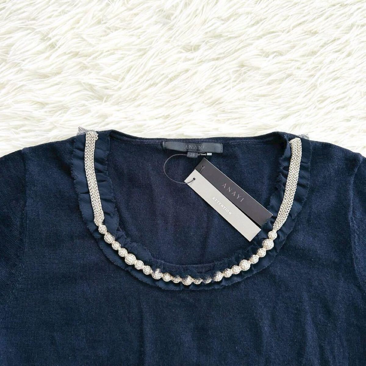 【新品タグ付】ANAYI アナイ ビジュー装飾 ニット ウール混 クルーネック