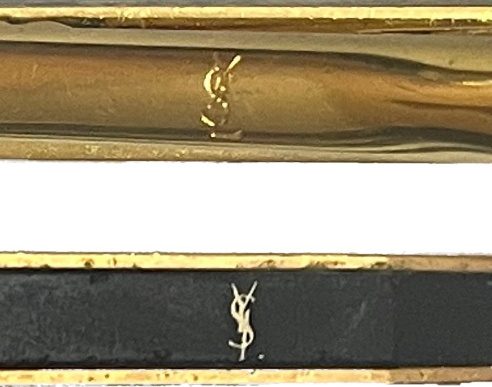 【お得】イヴ・サンローラン メンズ ロゴデザイン タイバー YVES SAINT LAURENT 黒 金 ゴールド ブラック