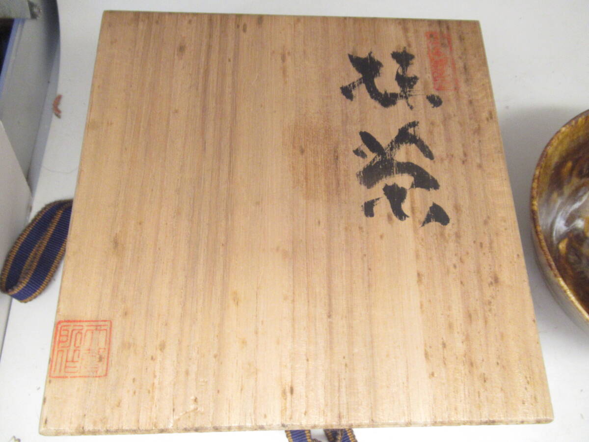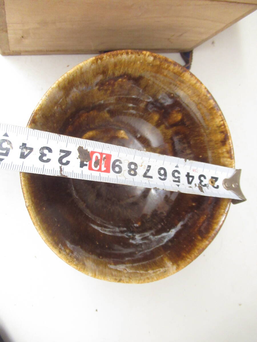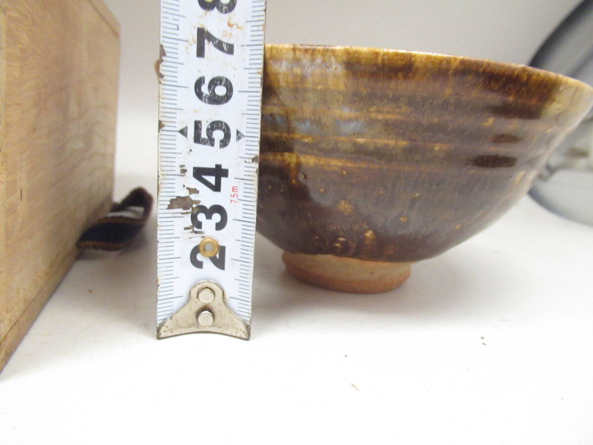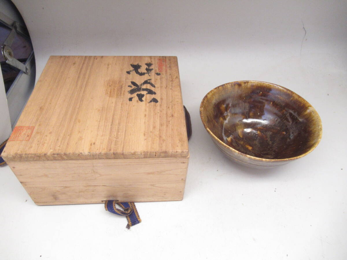 天声 造 越後芦原焼 あわらやき 飴釉茶碗 久世天声 共箱 中古茶道具 茶器 抹茶椀 中古品