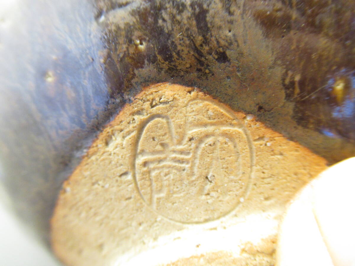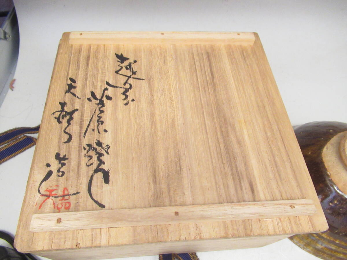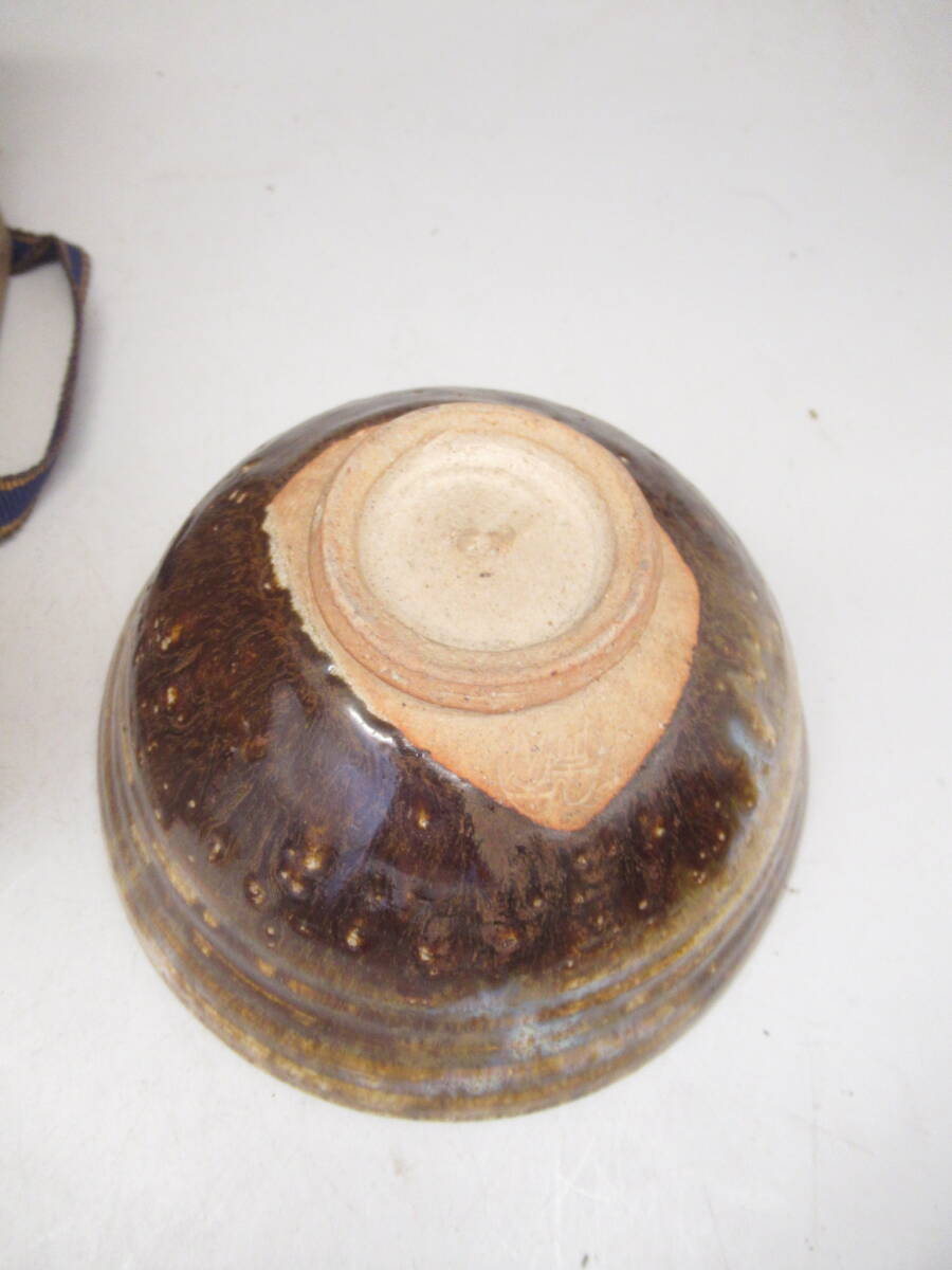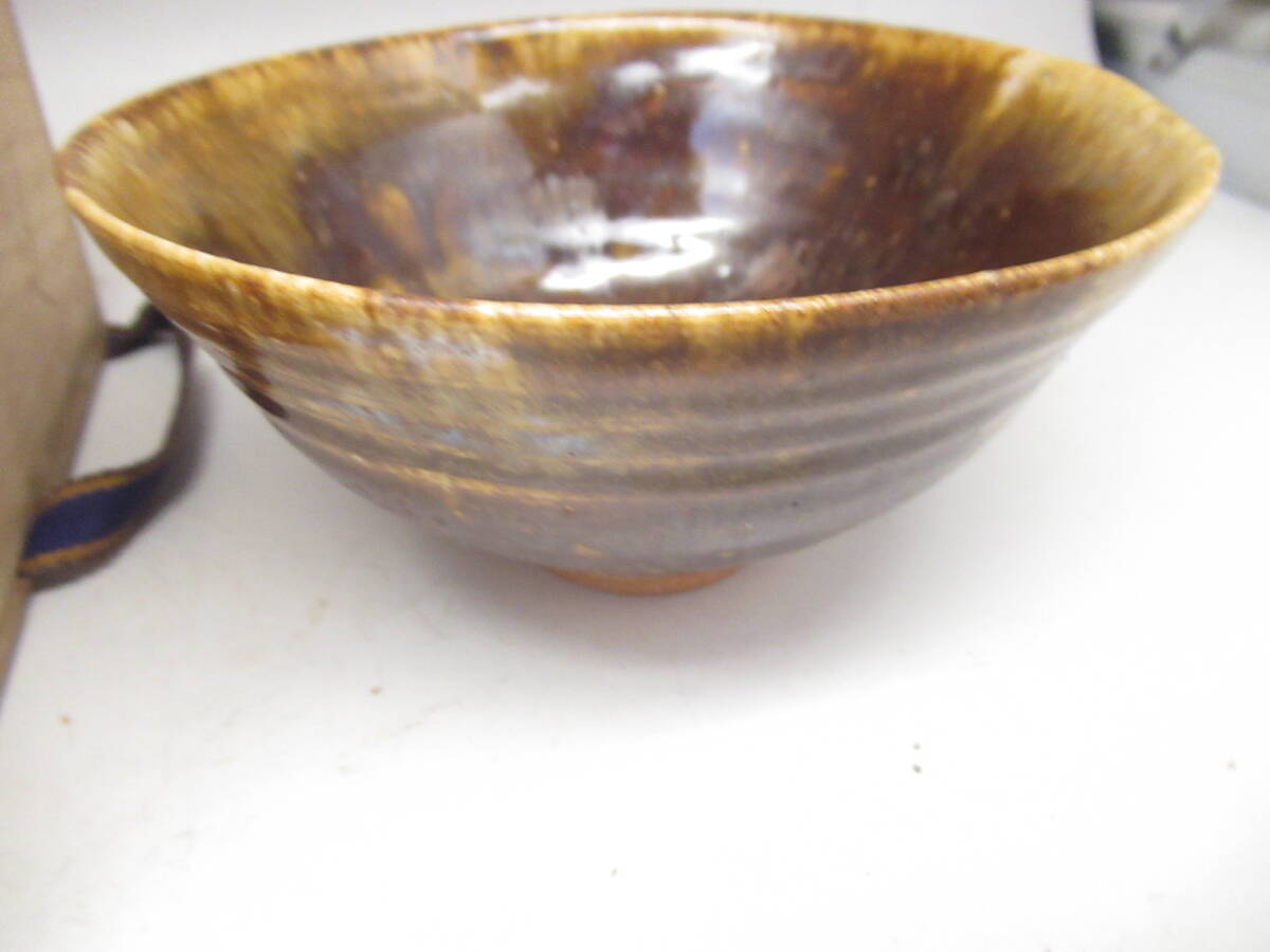 天声 造 越後芦原焼 あわらやき 飴釉茶碗 久世天声 共箱 中古茶道具 茶器 抹茶椀 中古品