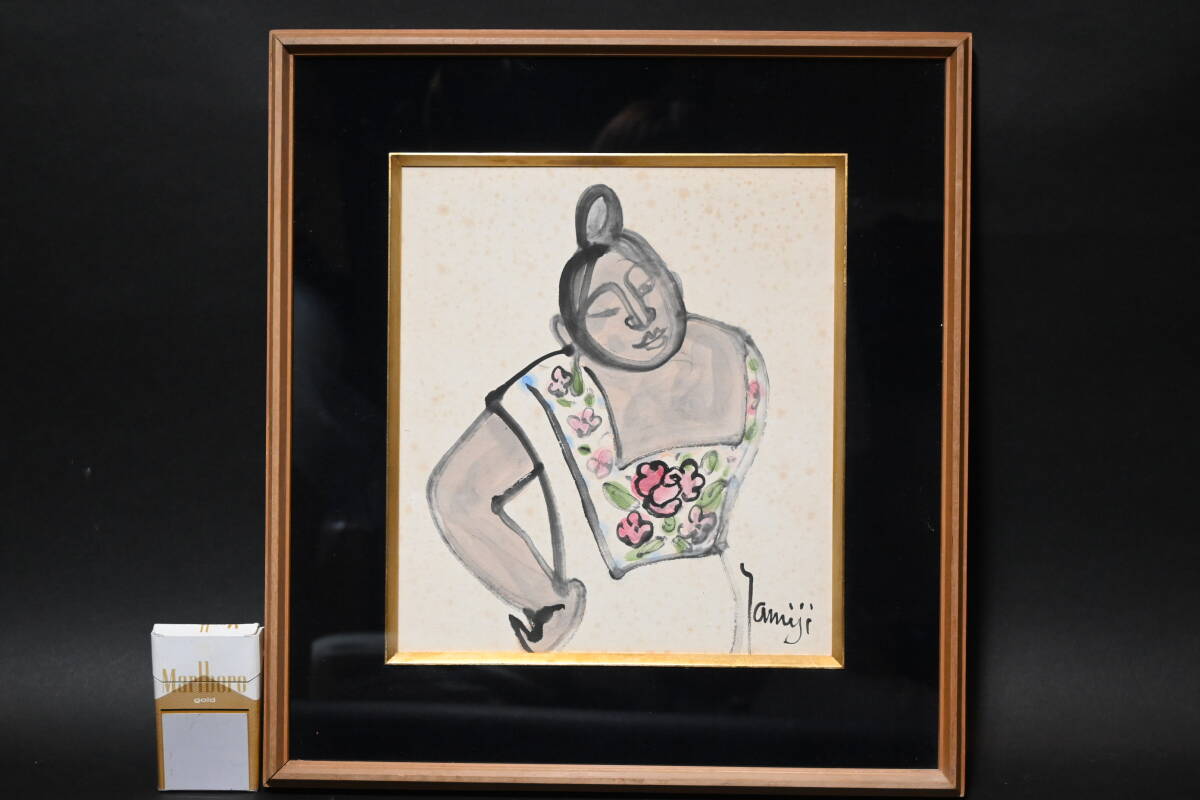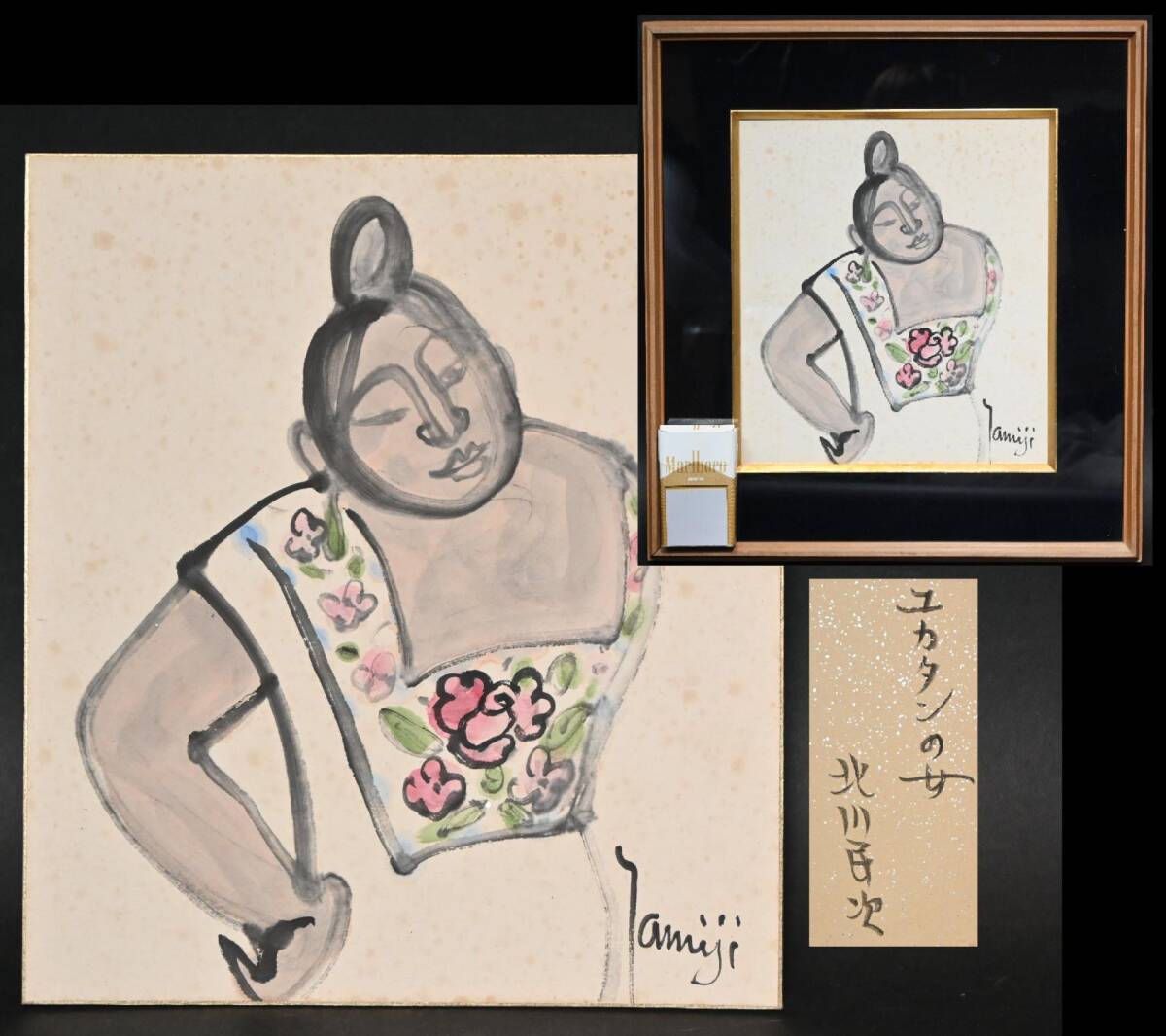 北川民次『ユカタンの女』 水彩 色紙 肉筆 サイン有 額装 真贋保証 ユカタン半島 メキシコ 静岡県生 ジョン・スローンに師事 二科会会長 | ||||||