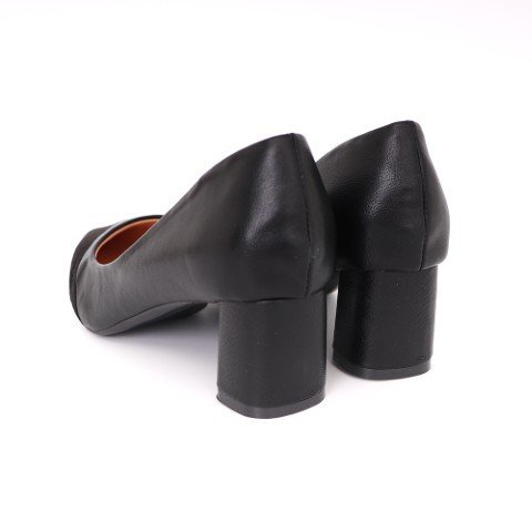 女性らしいポインテッドトゥで仕上げた、チャンキーヒールパンプスです