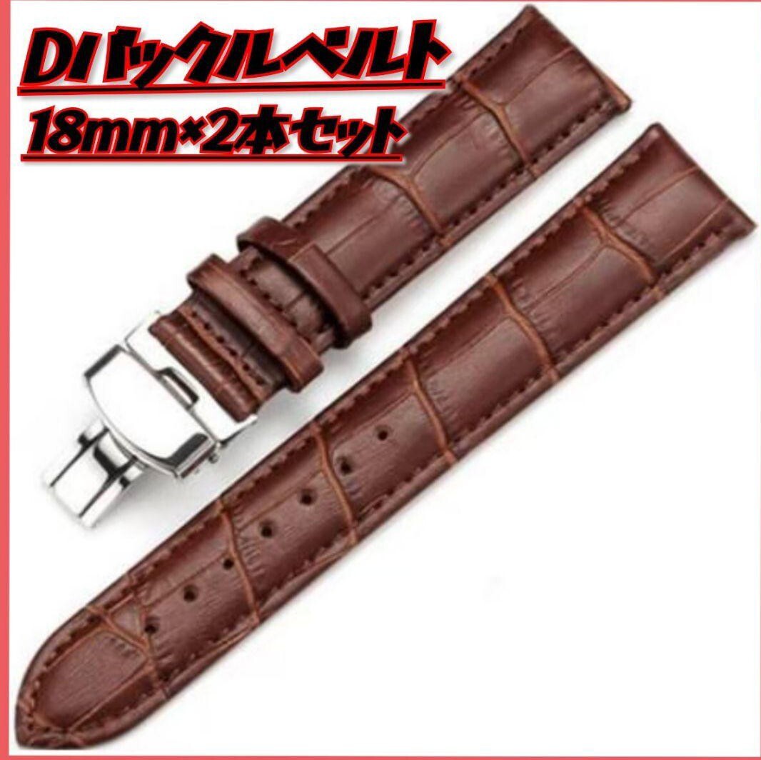 【2本セット】腕時計ベルト Dバックル 20mm Brown レザーベルト