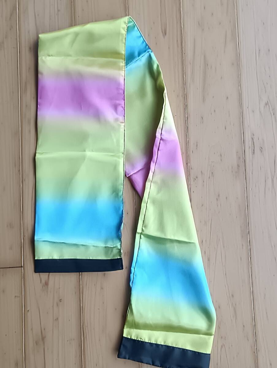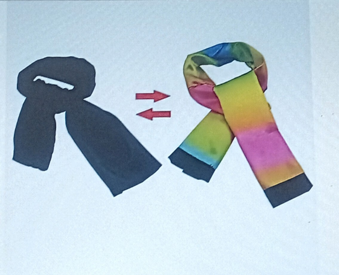 ★色変わりスカ-フです、黒色スカ-フを振りますと徐々に鮮やかなレインボー柄スカ-フに変化する
