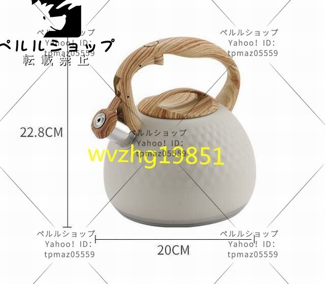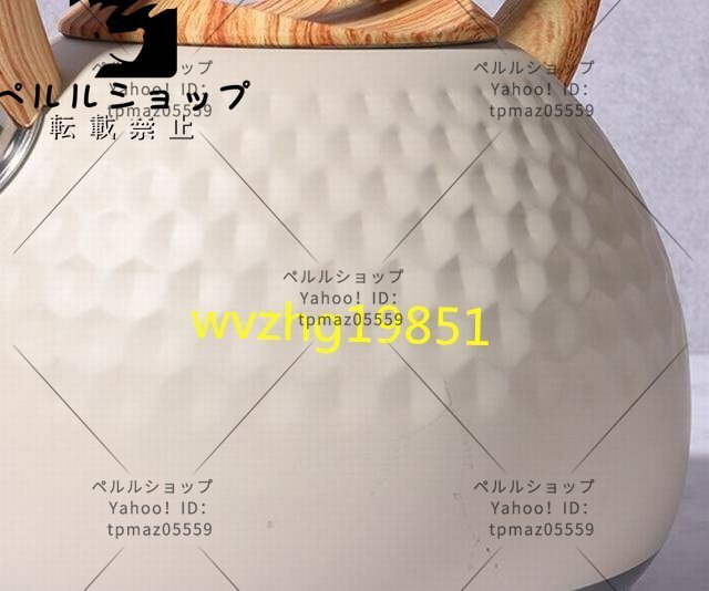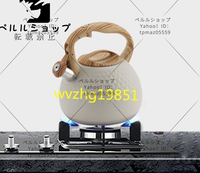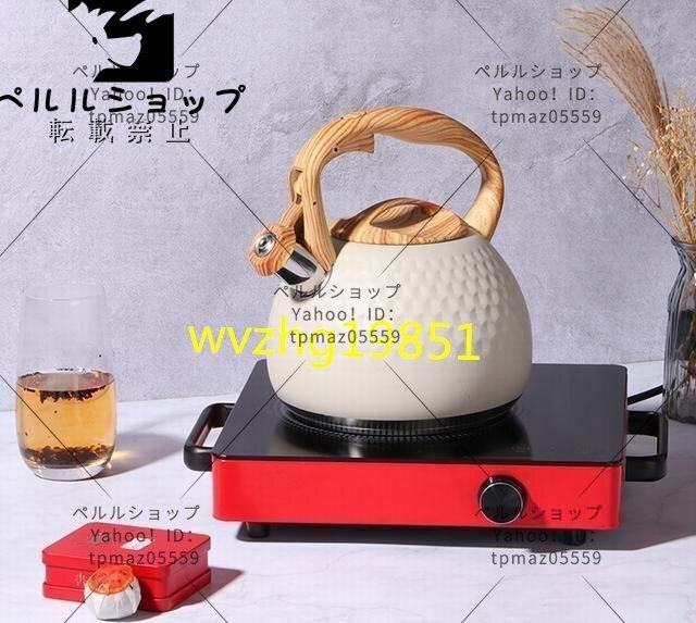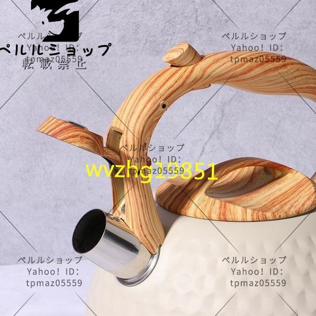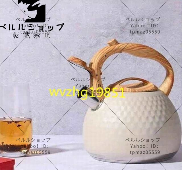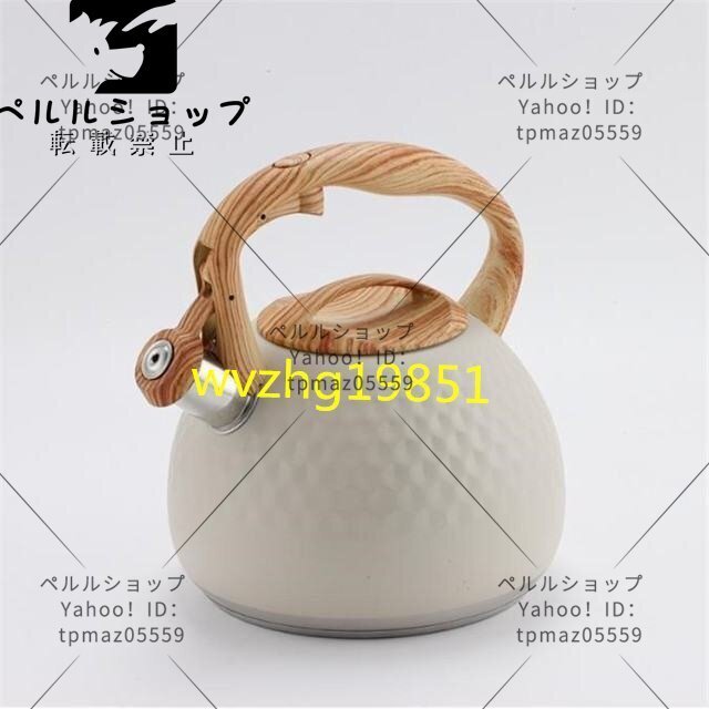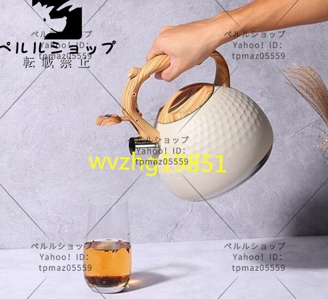 やかん 3L 笛吹きケトル ステンレス製 広口 木目調ハンドル タッチボタン 簡単開閉 大容量 IH対応 ガス対応 かわいい ベージュ☆1点
