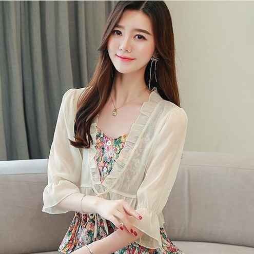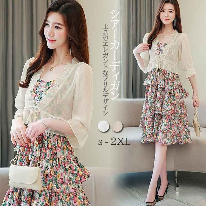 ・さらっと羽織っていただけるシアー素材感のサマーカーディガン。フリルがエレガントで女性らしい印象です。