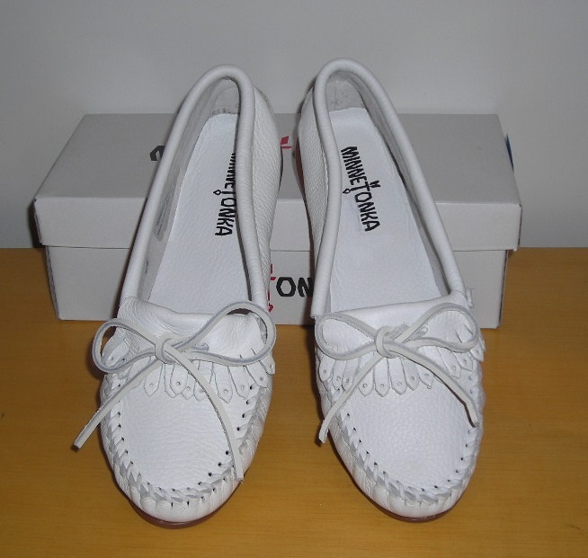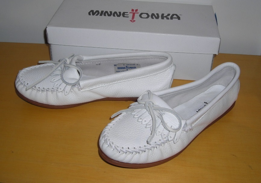 新品☆ミネトンカの高級鹿皮本革製のモカシン☆白☆US7.5☆24.5㎝