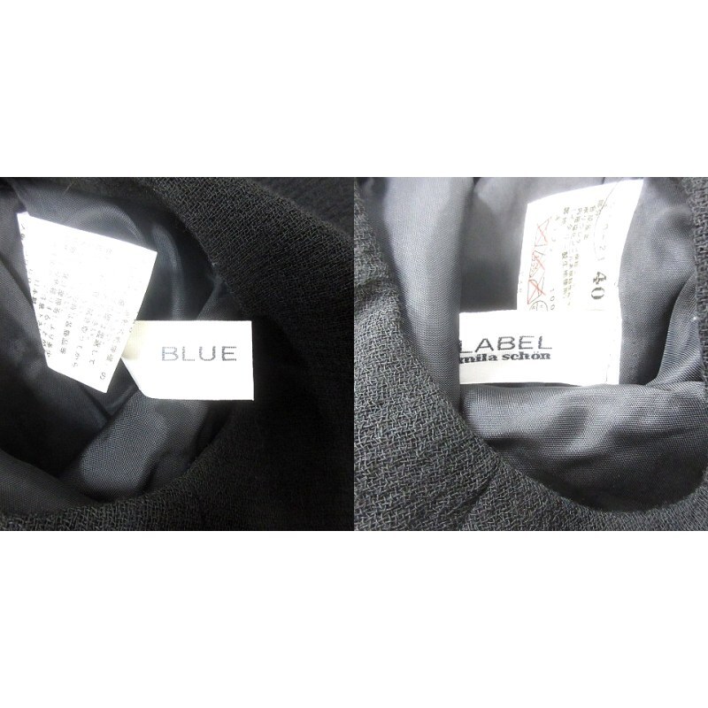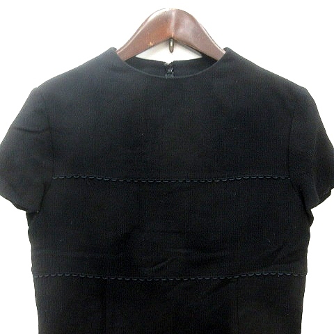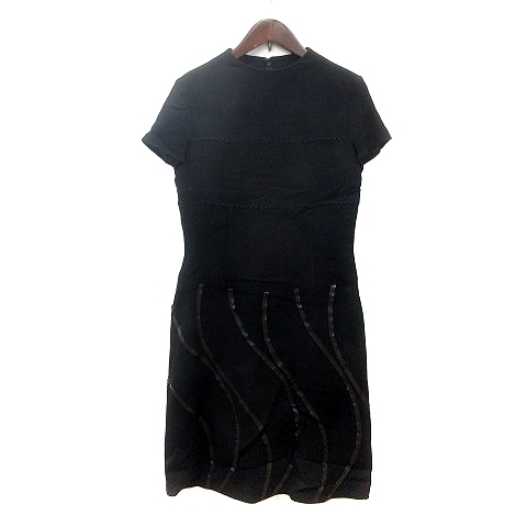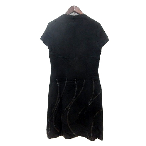 ミラショーン mila schon BLUE LABEL ワンピース ひざ丈 総柄 半袖 ウール 40 L 黒 ブラック /MN レディース