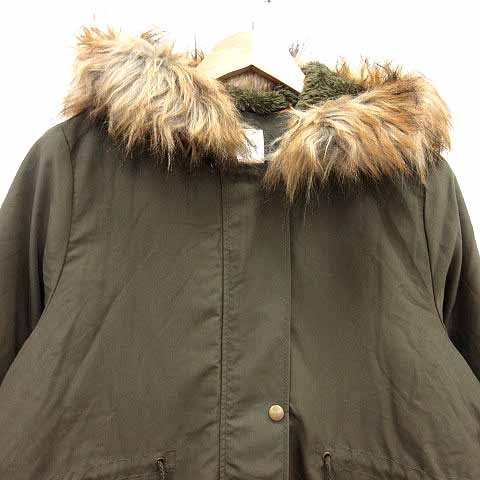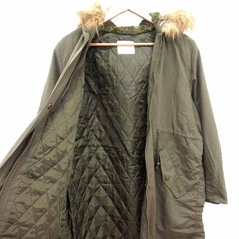 未使用品 レイカズン Ray cassin モッズコート 中綿 ジップアップ フェイクファー 総裏地 F 緑 カーキ /YK レディース