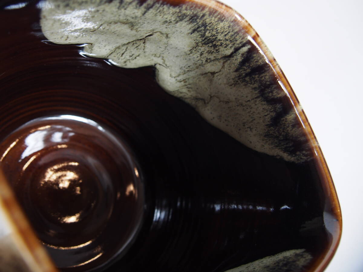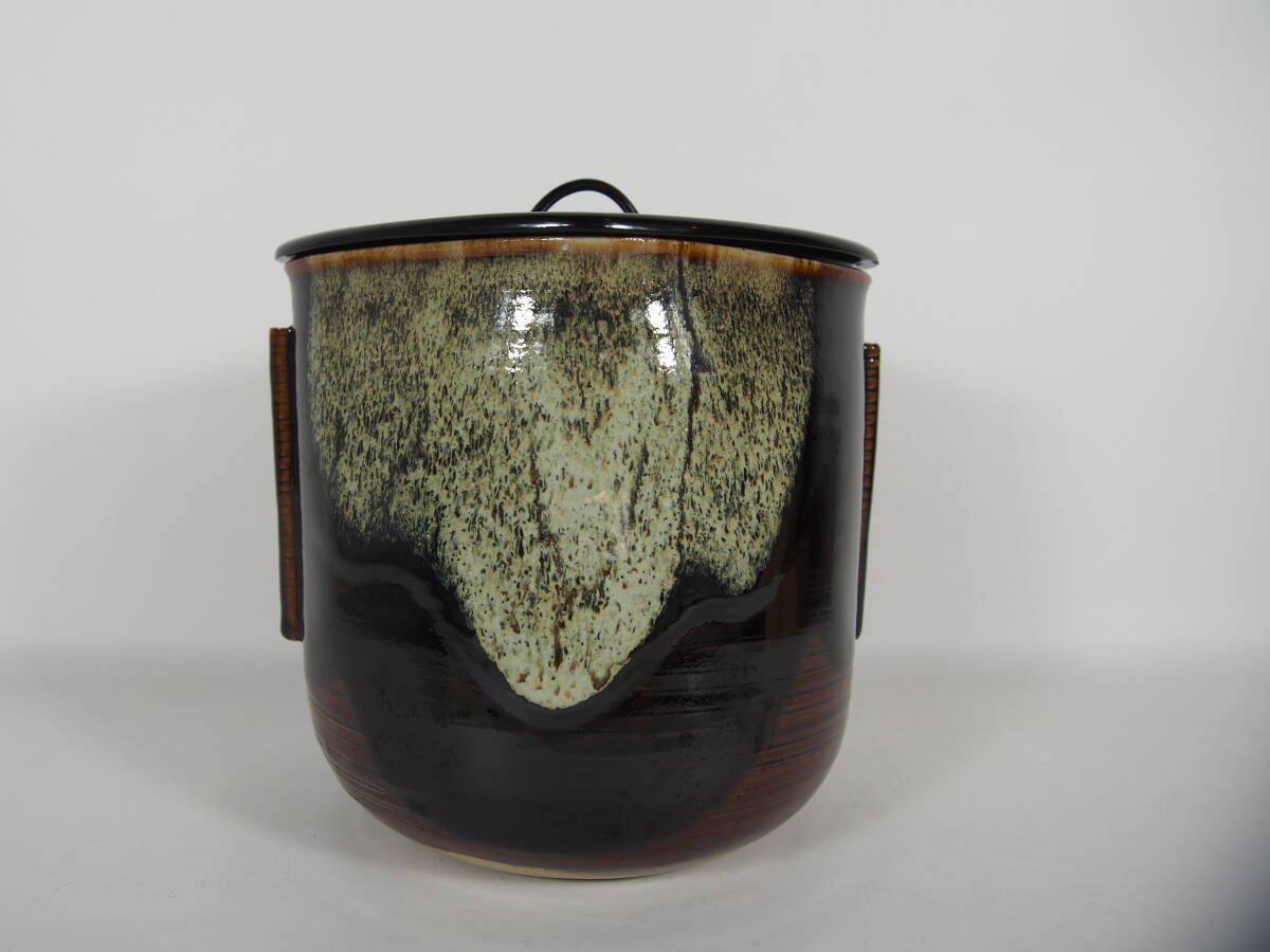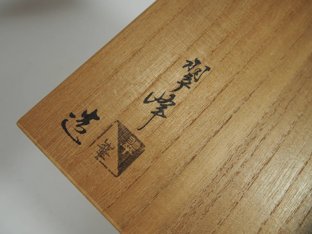 青柳翠峯 高取焼 菱形 水指 木製 塗蓋 在銘 共箱 桐四方桟 茶道具 N-94