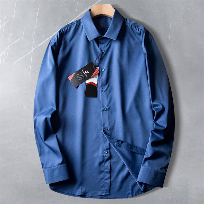 P2812-L/ブルー 新品DCKMANY■シルク混 長袖シャツ メンズ ノーアイロン 形態安定 ドレスシャツ ワイシャツ 無地 ビジネス シャツ