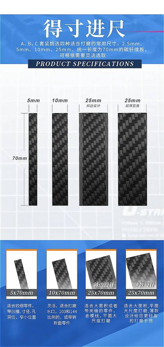 ◆◇U Star【UA90701】超薄型カーボンファイバー・サンディングボードA(25mmx70mmx1㎜)◇◆