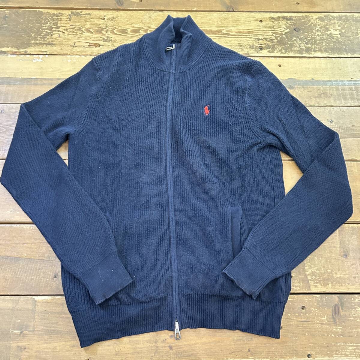 POLO RALPH LAUREN / ポロ ラルフローレン ポニー刺繍 ジップアップニット セーター ネイビー メンズ Sサイズ USED