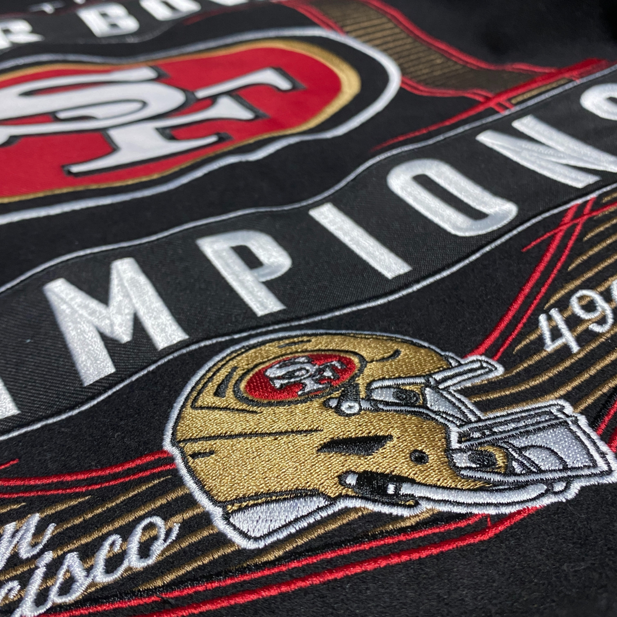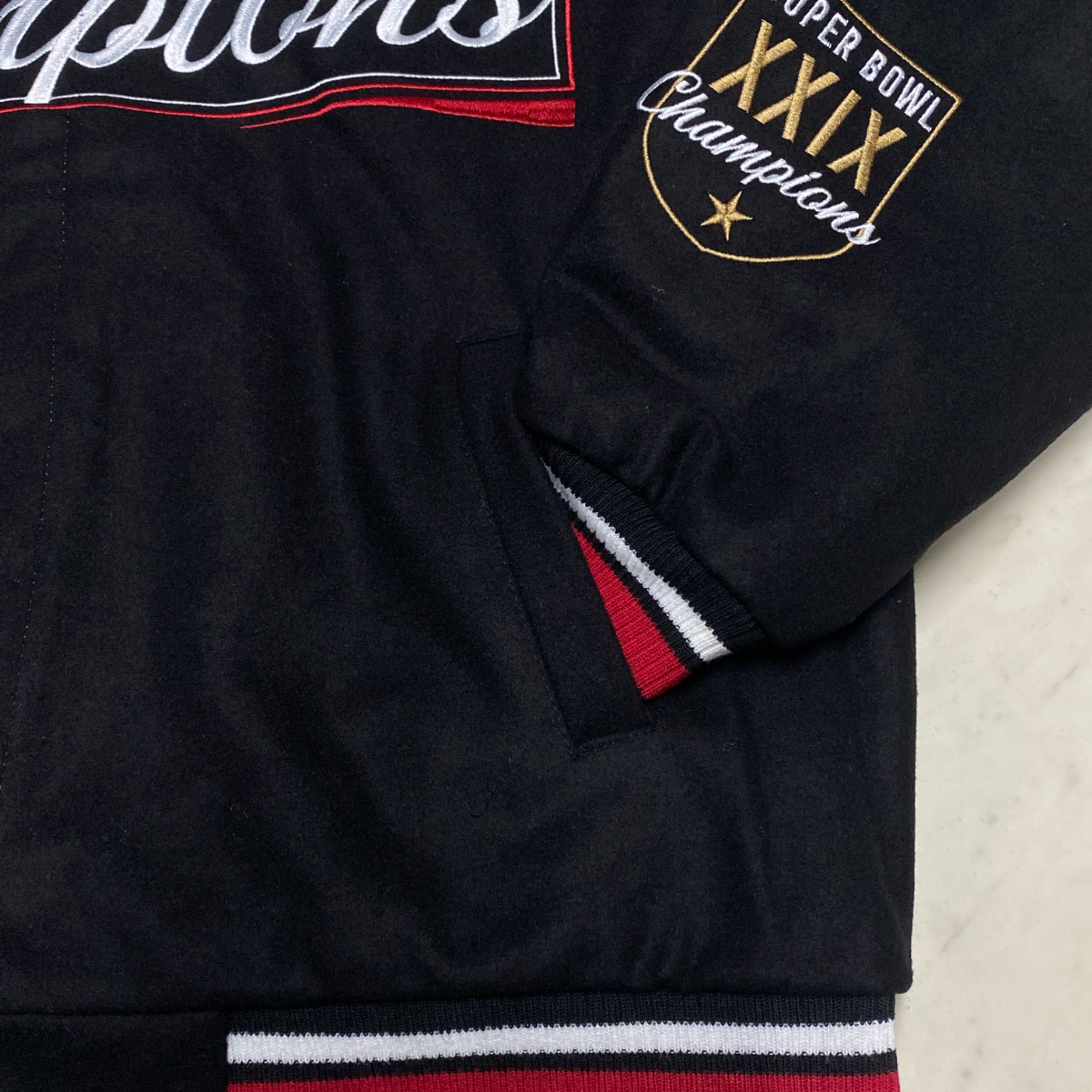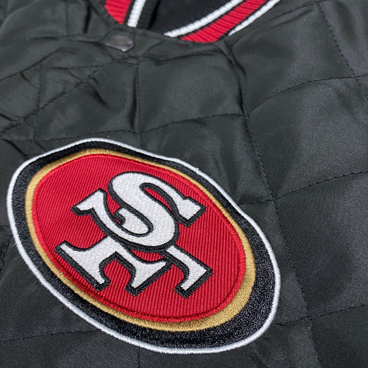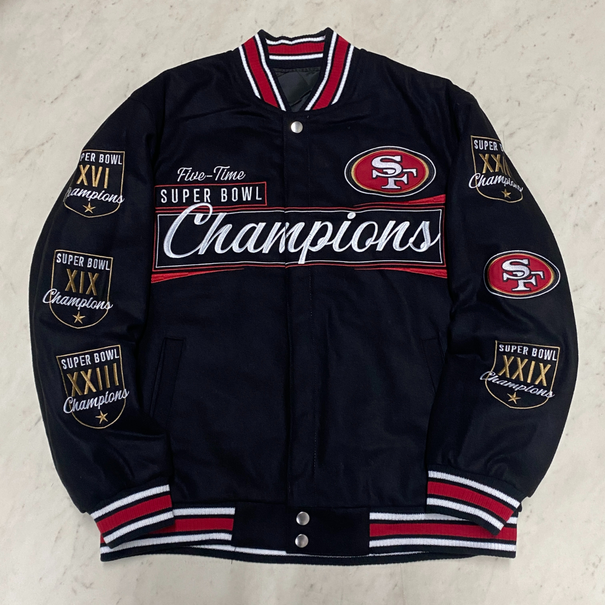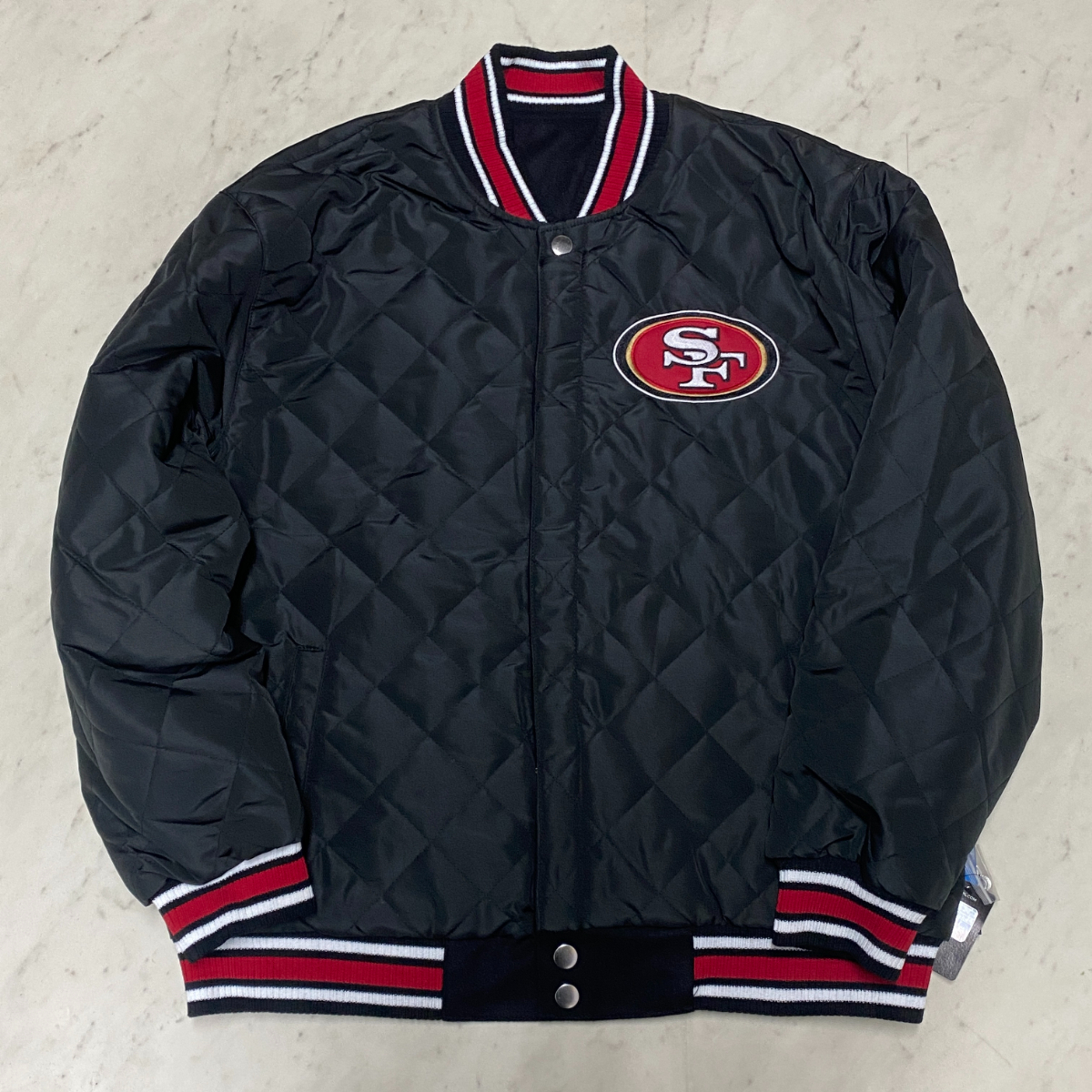 ラスト1 海外限定【4XL】 NFL JHデザイン SF 49ers フォーティナイナーズ Champions チャンピオンズ リバーシブル スタジャン 黒 USA正規品