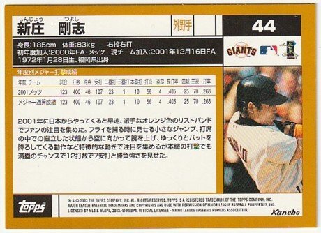 新庄剛志 2003 TOPPS&カネボウ コラボ 日本語版 SAN FRANCISCO GIANTS