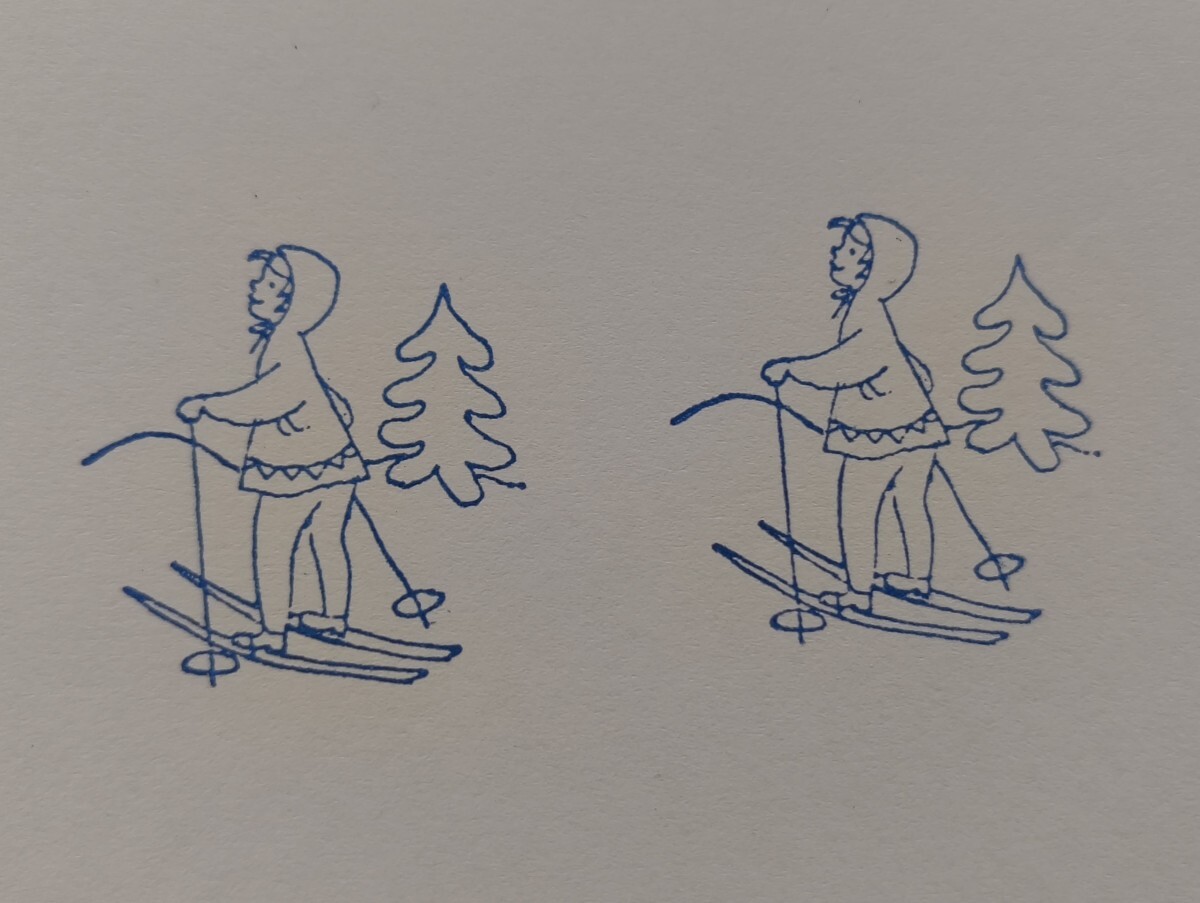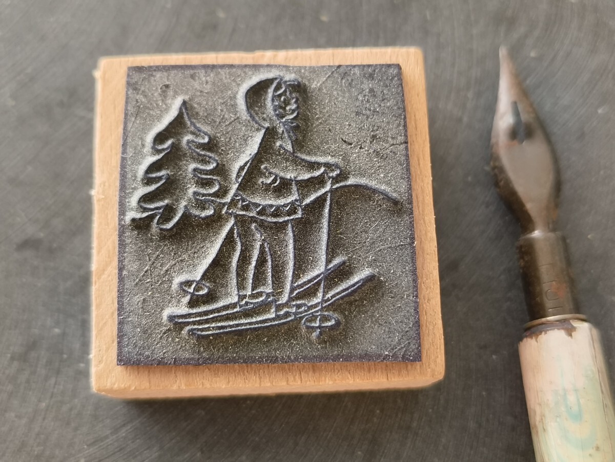 雪山 スキー 女の子 アルプス 樅木 フランス アンティーク 子供 スタンプ ヴィンテージ ハンコ フレンチ レトロ イラスト 仏