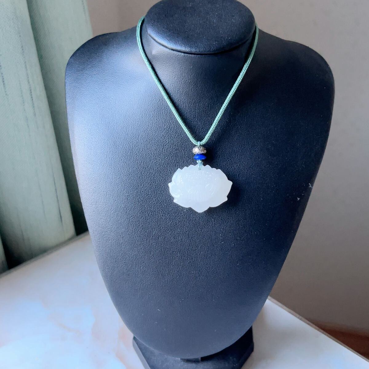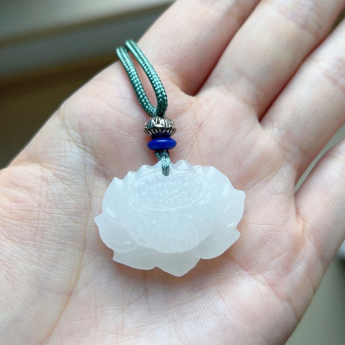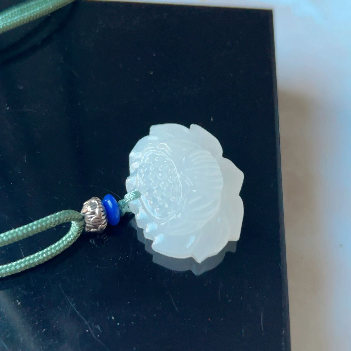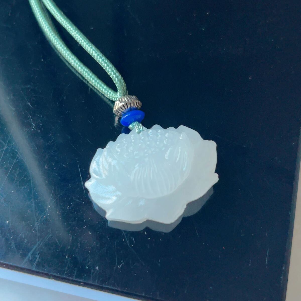 ☆アフガニスタン翡翠・ヒスイ☆天然石☆ネックレスペンダント☆蓮花形☆ラッピング袋付き☆プレゼントにも 14PR1061
