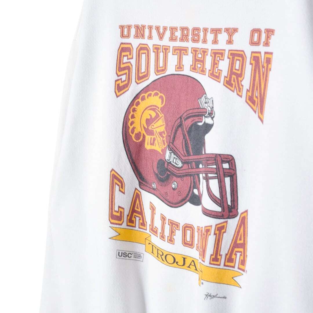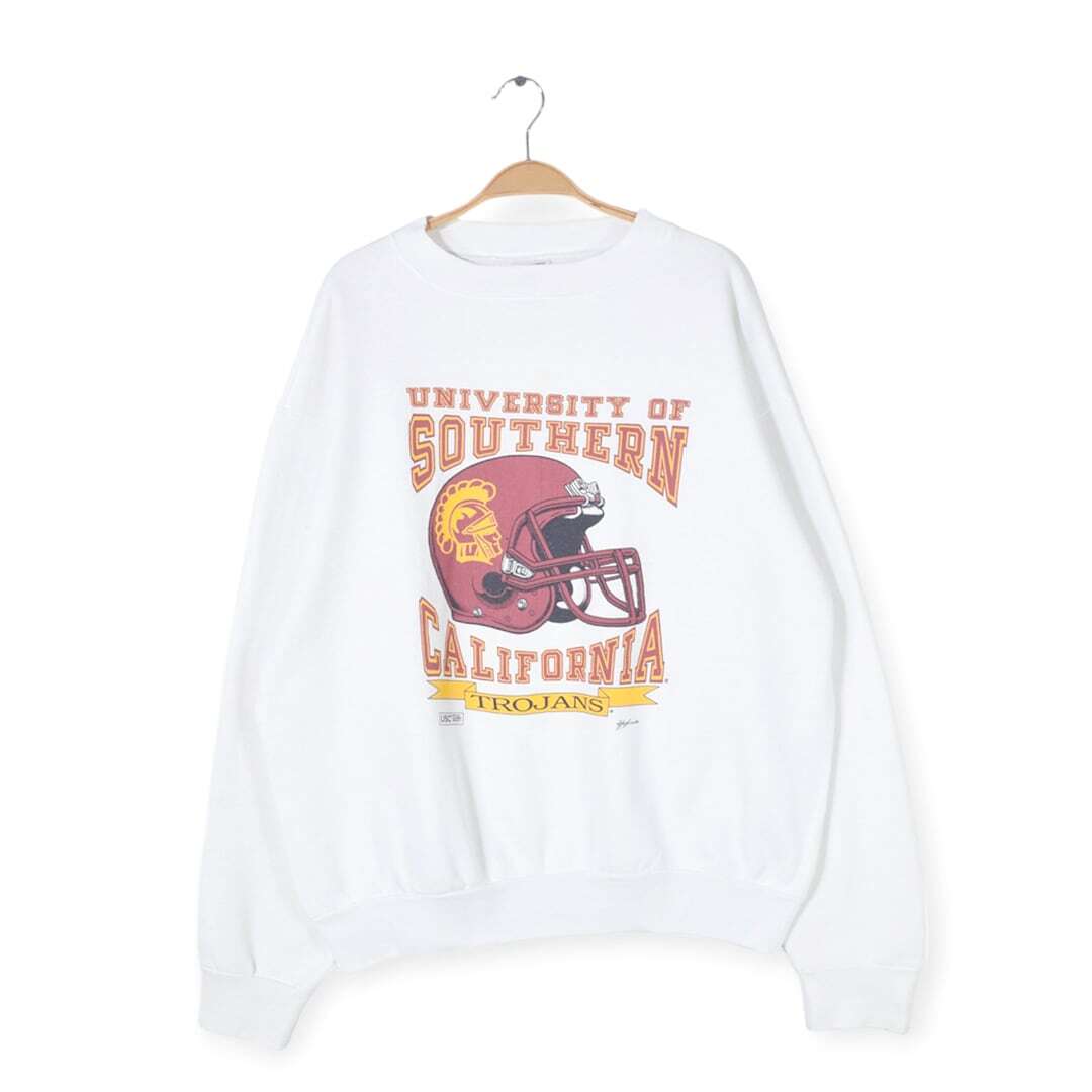 80s 南カリフォルニア大学 USA製 ヴィンテージスウェット USC カレッジ アメフト 白 ホワイト メンズXL 古着 @CF0847