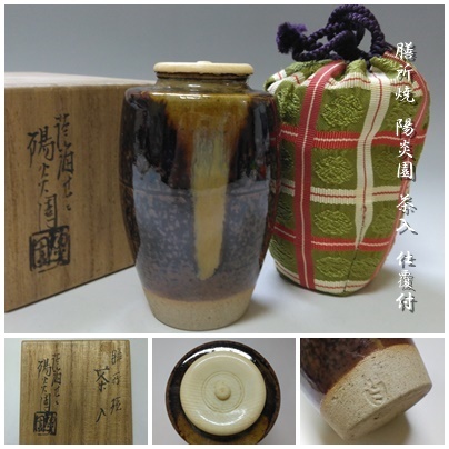 【T-291】膳所焼 陽炎園 淡海ぜぜ 茶入 仕覆付 茶道具 | |||