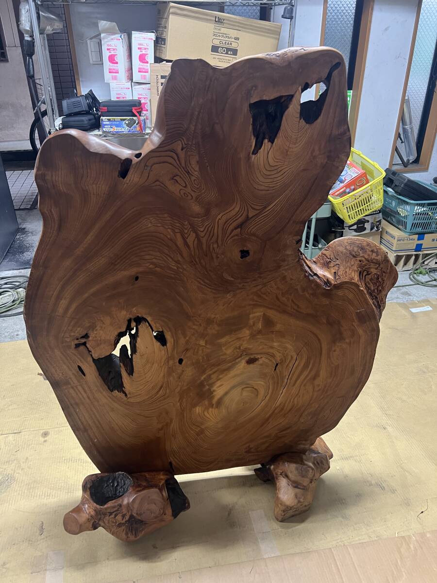 特産島根県 銘木潦塗製品 1枚板 木の自然な曲線を活かした重厚感ある1枚板 玄関先 DIY 店舗 別荘などに 机台座あり美品中古品