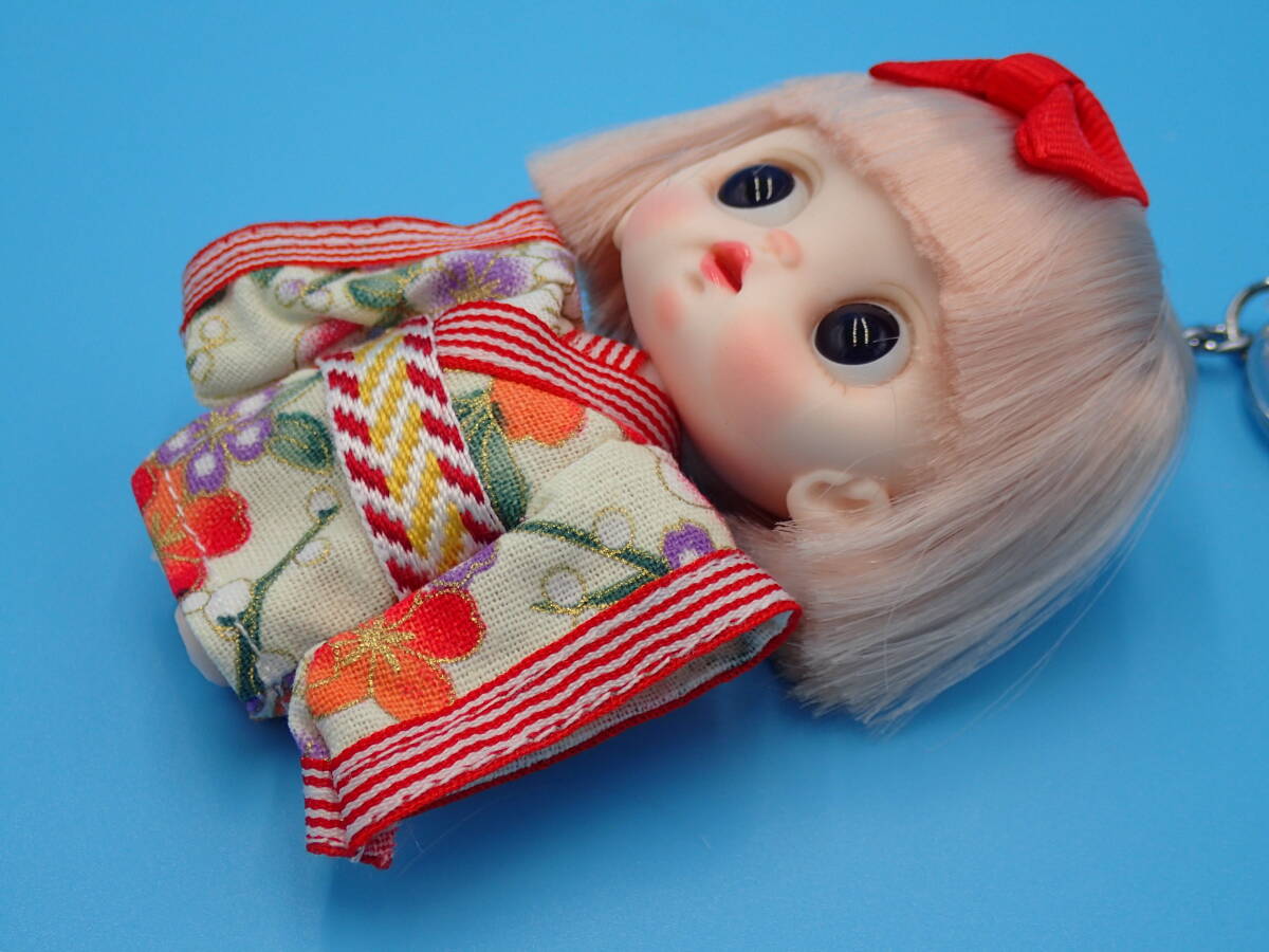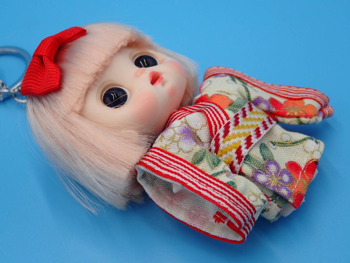 Kawaii 着物のエマちゃん キャラクタードール キーホルダー&リング付 6種の1種 色:緑 90x55x36mm