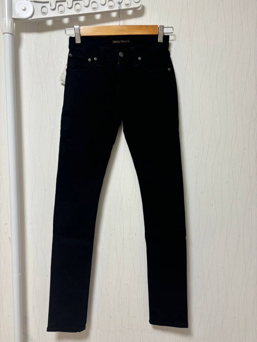 未使用☆[Nudie Jeans] TIGHT LONG JOHN ストレッチスキニー ブラックデニムパンツ 24 レディース ヌーディジーンズ