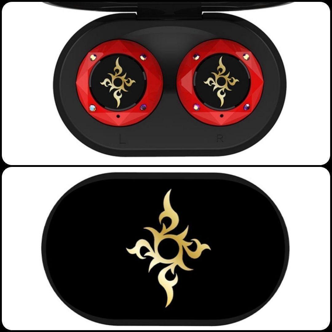 ファンにはお馴染みのトライバルマークがあしらわれた充電ケースの中には、ブラック×レッドのロックな配色のイヤホンが鎮座
