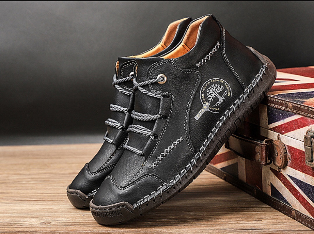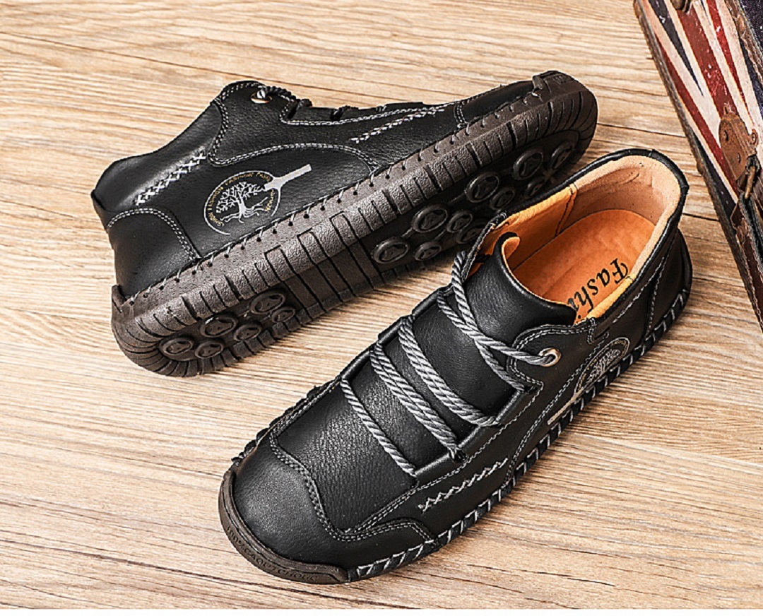 正規品★ウォーキングシューズ 本革 レザーシューズ 牛革 メンズブーツ 紳士靴 スニーカーアウトドア軽量通気 キャンプ 26.0cm ブラック