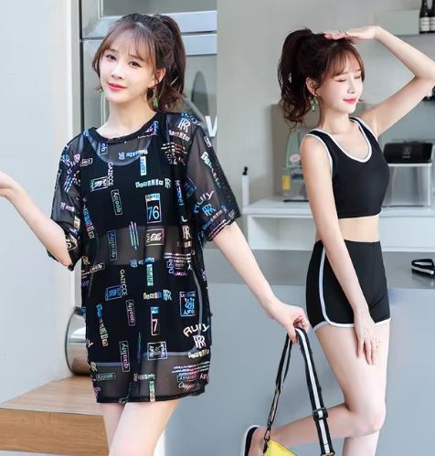 【3XLサイズ 3点セット】スリットベリーカバー水着,スリミング,フラットアングル,スポーツ,学生,大型,温泉,新品 ※色:8271黒