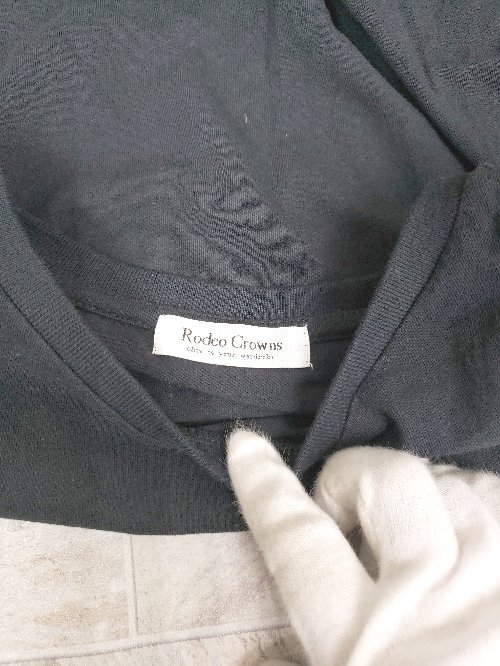 ◇ RodeoCrowns ロデオ クラウンズ ロゴ 刺繍 長袖 Tシャツ カットソー サイズF ブラック レディース P