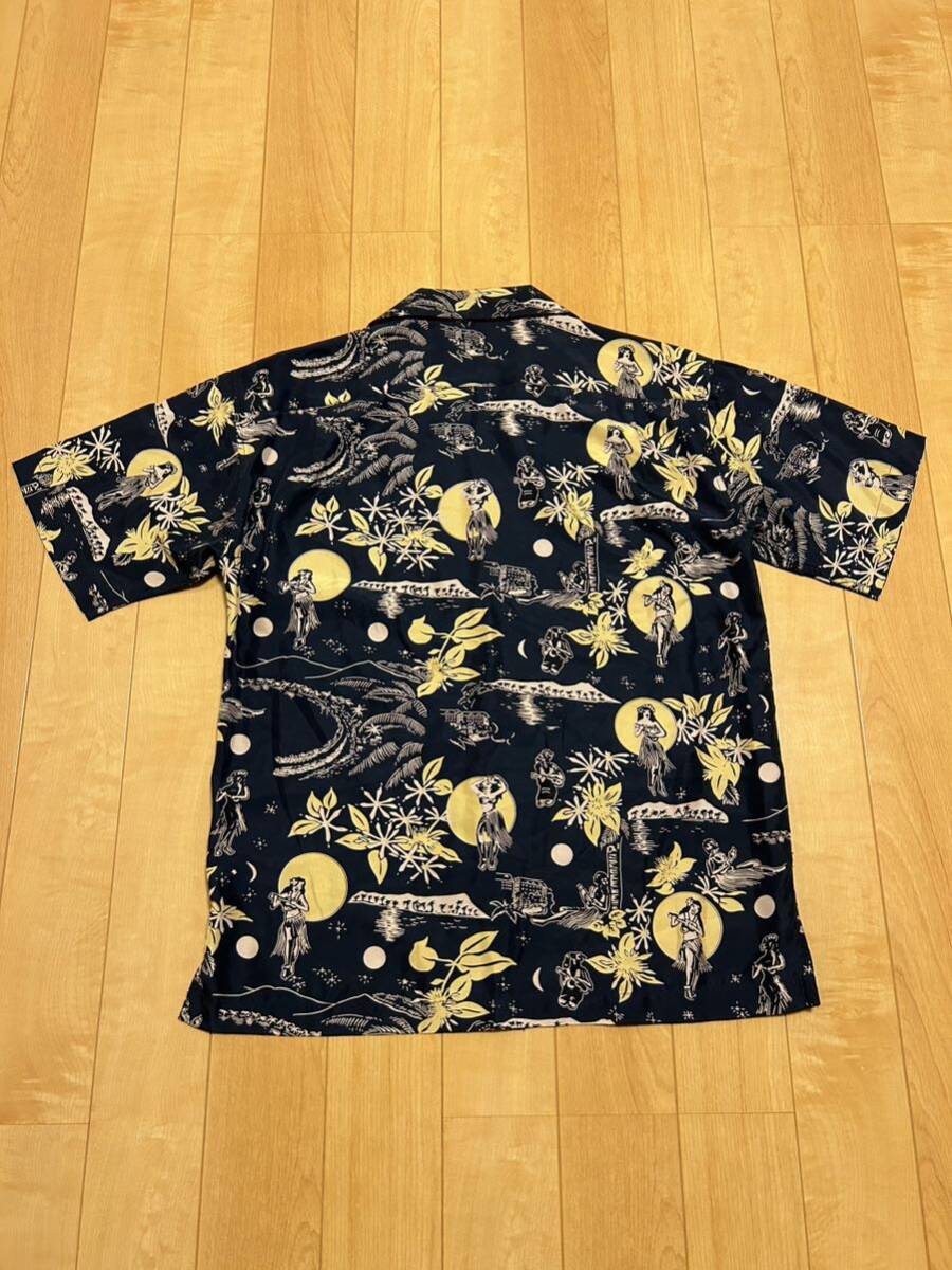 着用少な目.美品☆Trufan inc authenthic オーバーサイズM大き目 半袖希少.ブラックシルクアロハシャツ フラガール&ハワイアン総柄 黒!