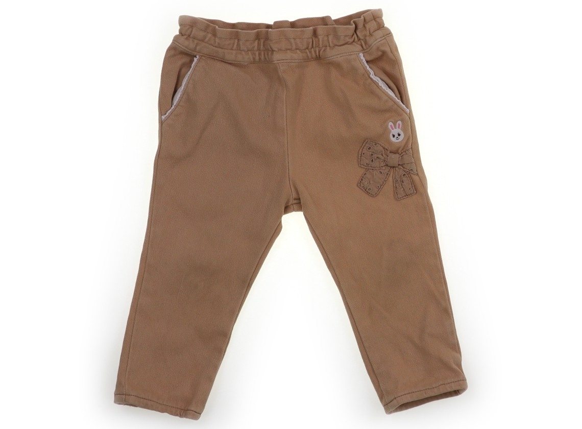 品質タグにシールはがし跡のノリ残りあり。綿・ポリエステル素材。ウエストは総ゴムです。全体的に毛羽立ちが強く、両膝まわり薄黒い汚れがあります。右膝は引っ?き跡あり。外遊び用などにいかがでしょうか。