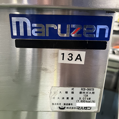 チャーブロイラー マルゼン RCB-066TB 都市ガス 業務用 中古/送料別途見積