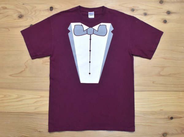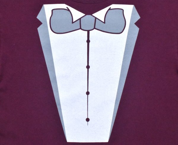 表にタキシードの騙し絵プリント、背面に文字がプリントされています。