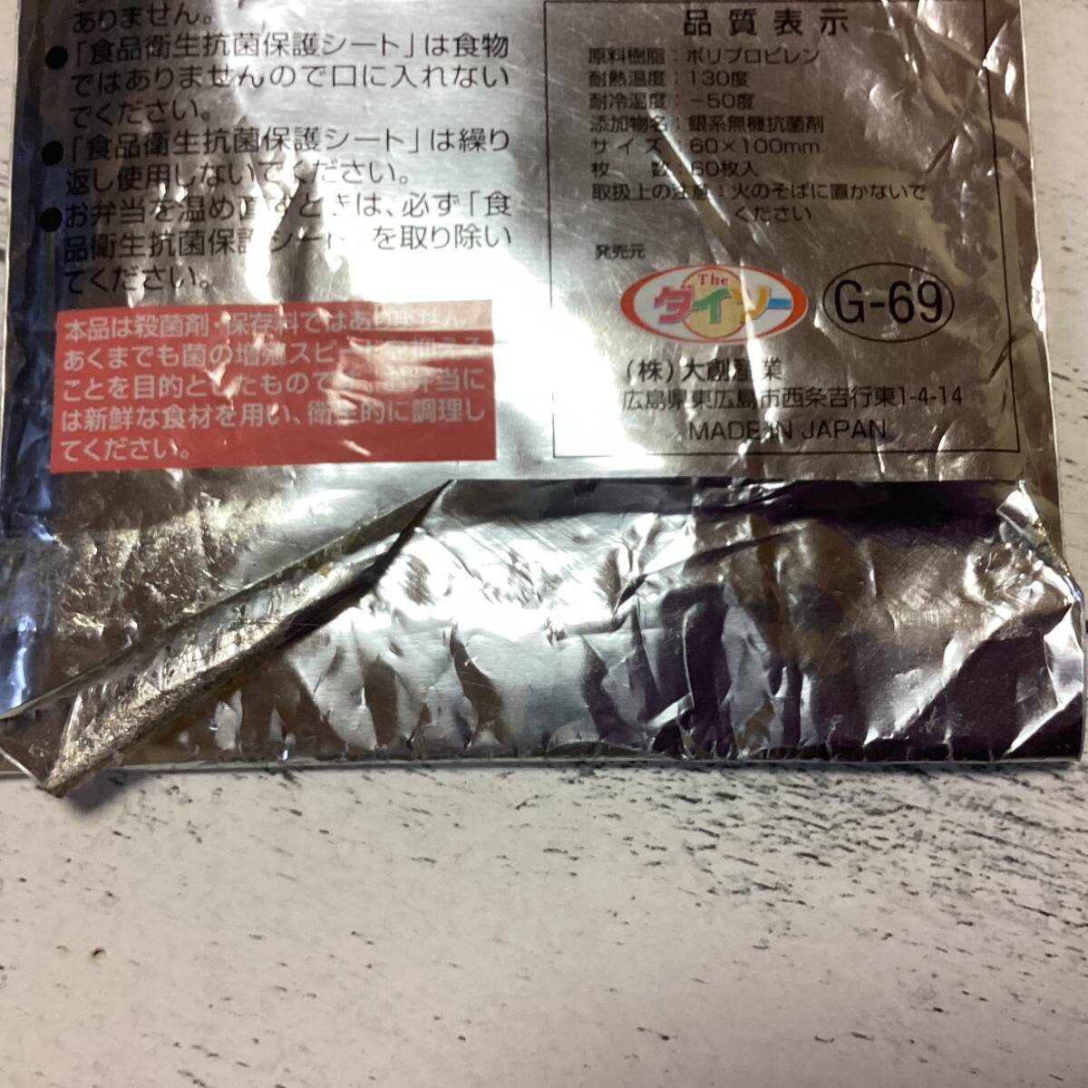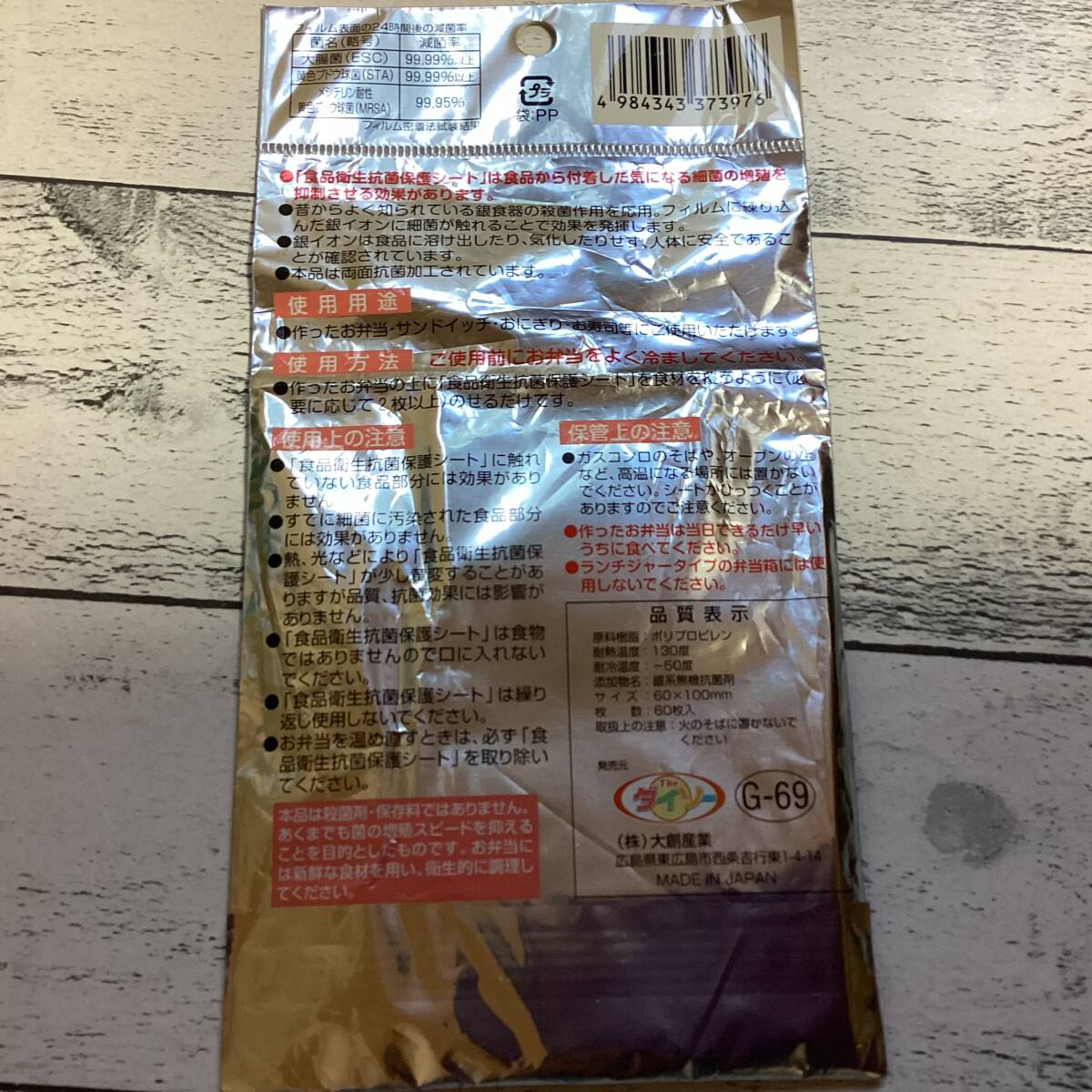 ・食品衛生抗菌保護シート 60枚入り×2袋  ダイソー