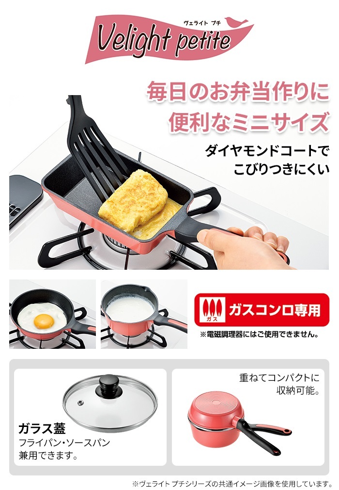 ◇こびりつきにくいダイヤモンドコートです。 ◇ガスコンロ専用 ※電磁調理器にはご使用できません。 ◇毎日のお弁当作りに便利なミニサイズです。 ◇内面にビスがないのでお手入れ簡単です。 |