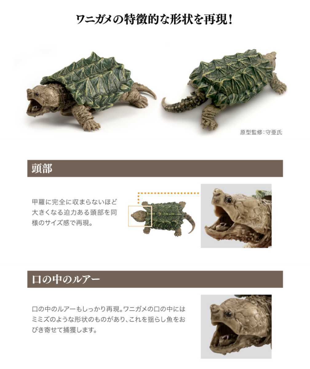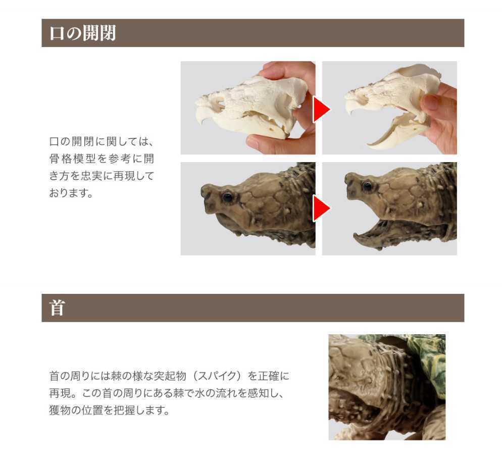 危険なワニガメを迫力ある造形にて徹底再現!