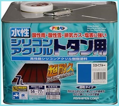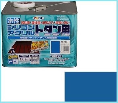 アサヒペン 塗料 ペンキ 水性シリコンアクリルトタン用 7L スカイブルー 水性 トタン 屋根塗料 ツヤあり 超耐久 1回塗り 速乾 紫外線劣化防止剤配合 日本製