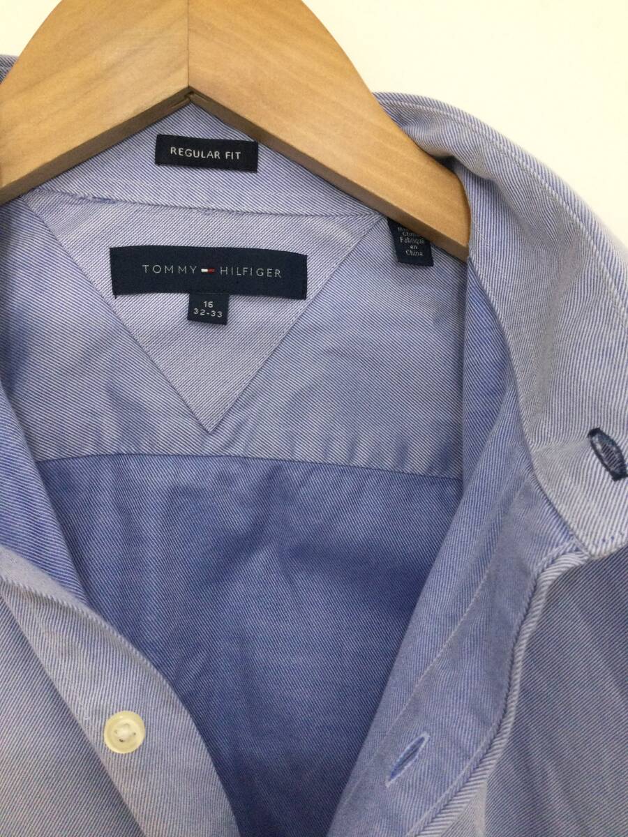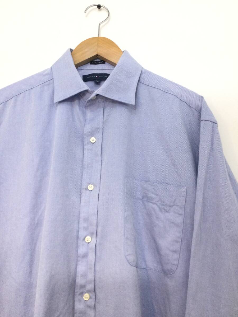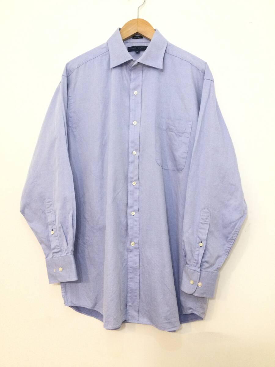 TOMMY HILFIGER トミーヒルフィガー コットン長袖シャツ ワイシャツ メンズL 青系 良品綺麗