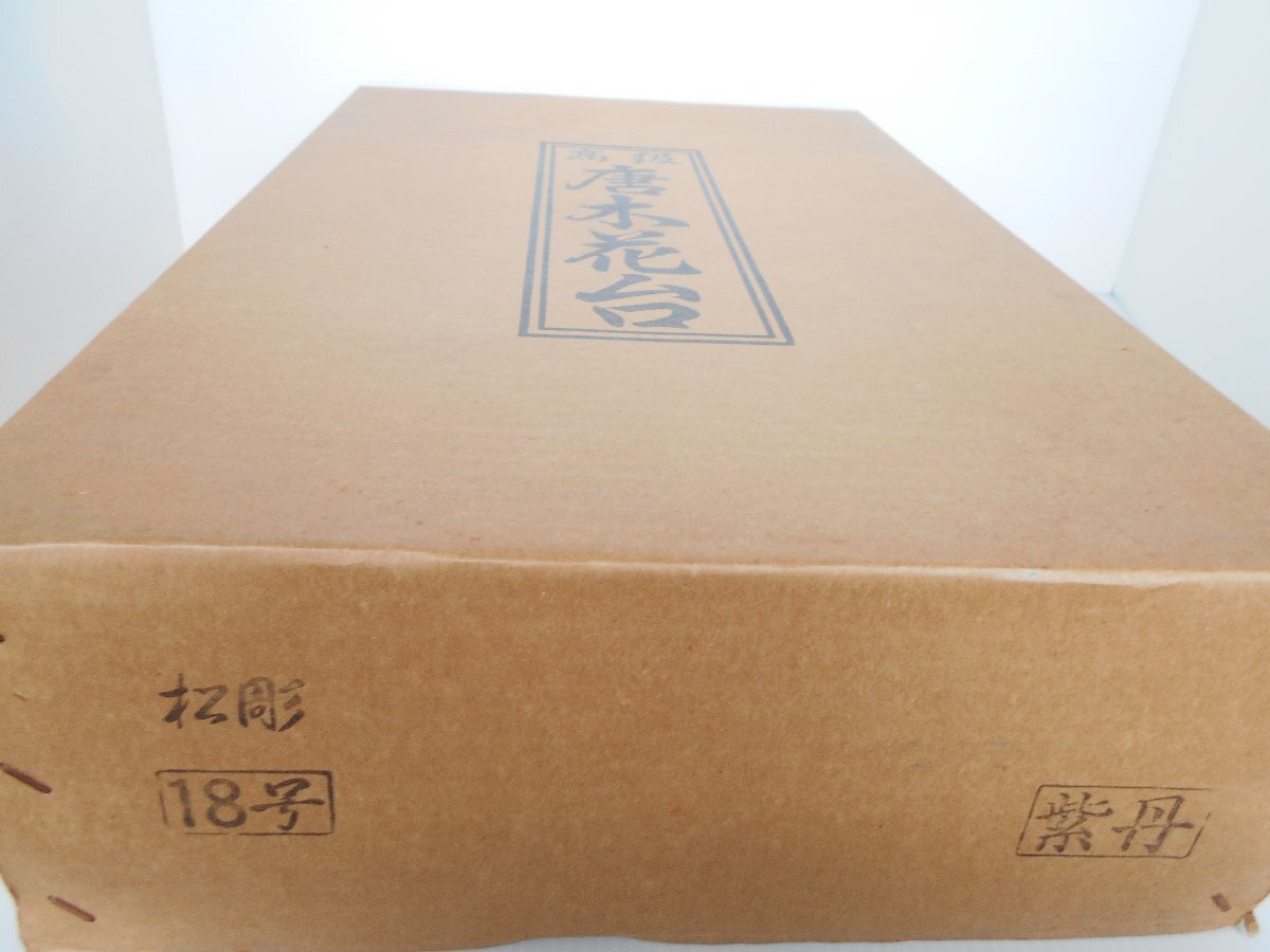 ○高級 唐木花台 18号 紫壇 松彫 約33cm×54cm 未使用