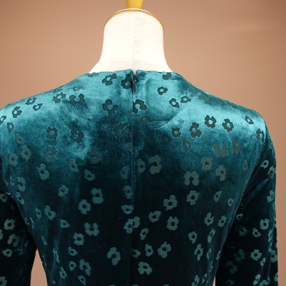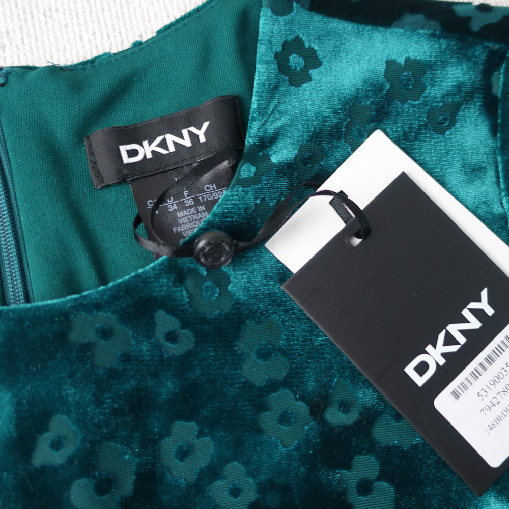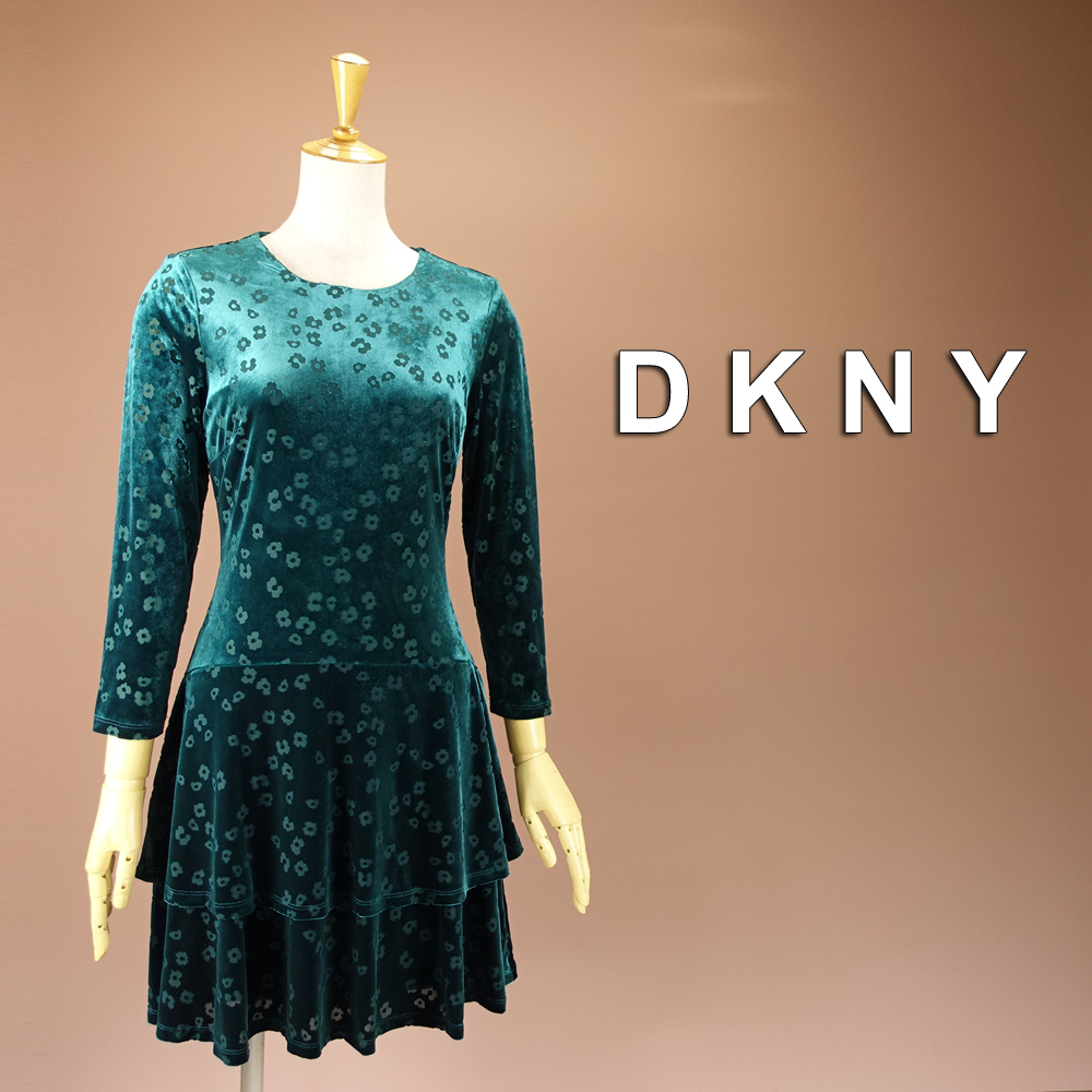 半額セール★新品 DKNY 10/15号 ダナキャラン 秋冬 緑 花柄 ベロア ワンピース パーティドレス 長袖 結婚式 二次会 謝恩会 輝21XX2404