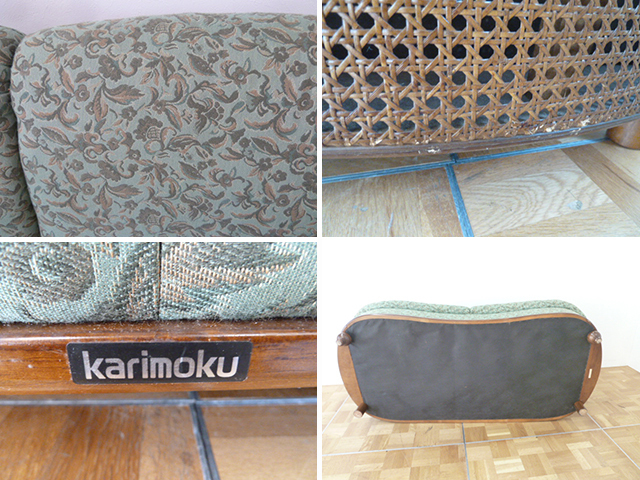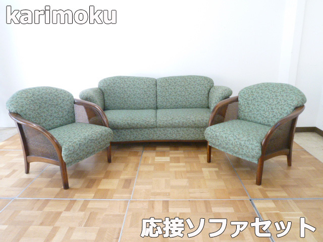 【中古】karimoku カリモク 応接 3点セット ソファ 2人掛け 1人掛け 肘掛 椅子 リビング モダン カントリー