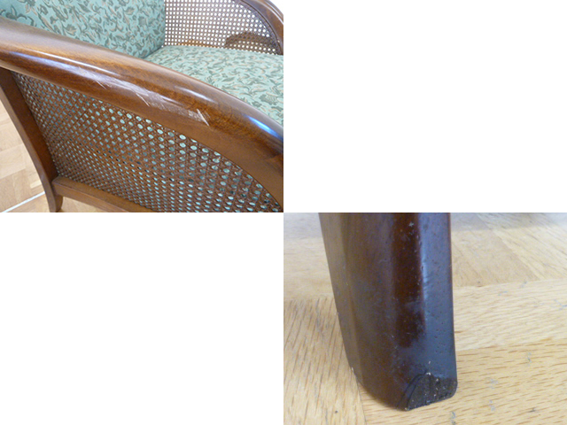 ・1人掛け1脚の肘掛にキズ、脚にキズ補修ございます。